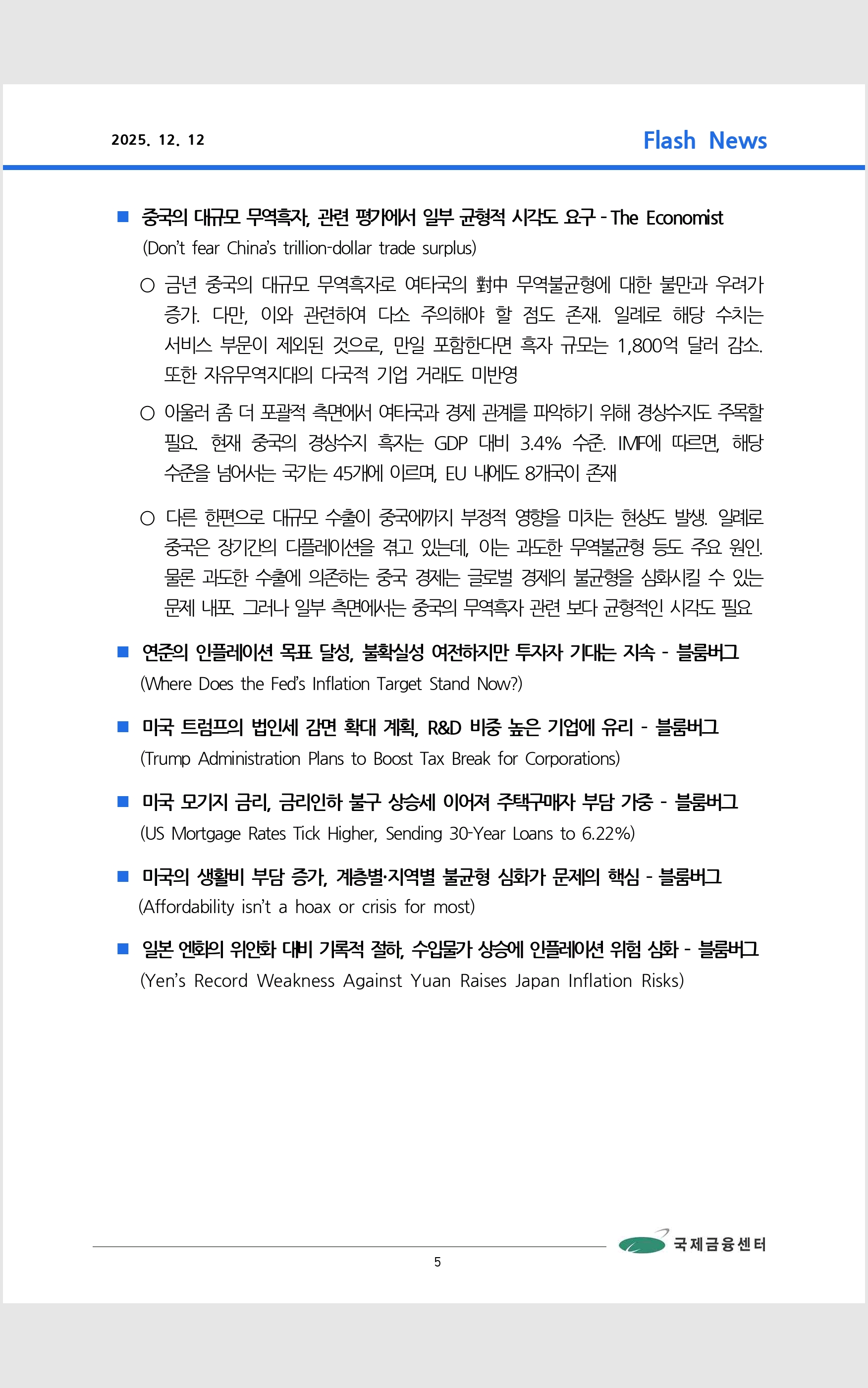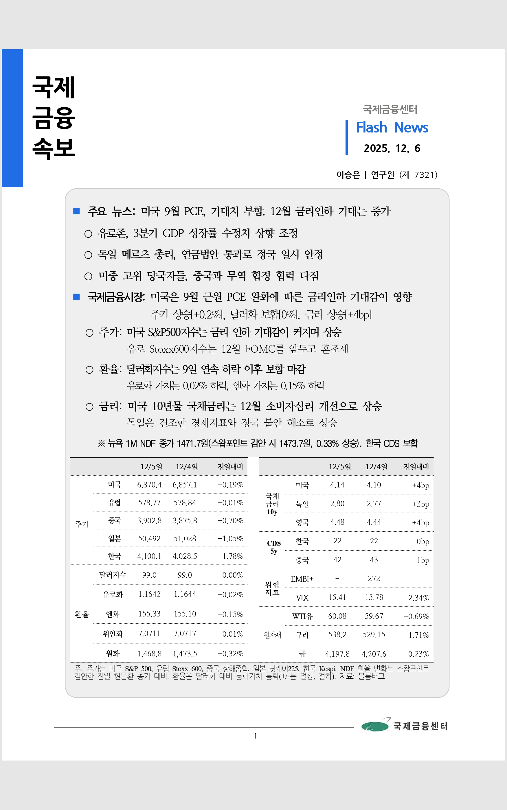 데일리 브리핑 ('25.12.6 국제금융센터)