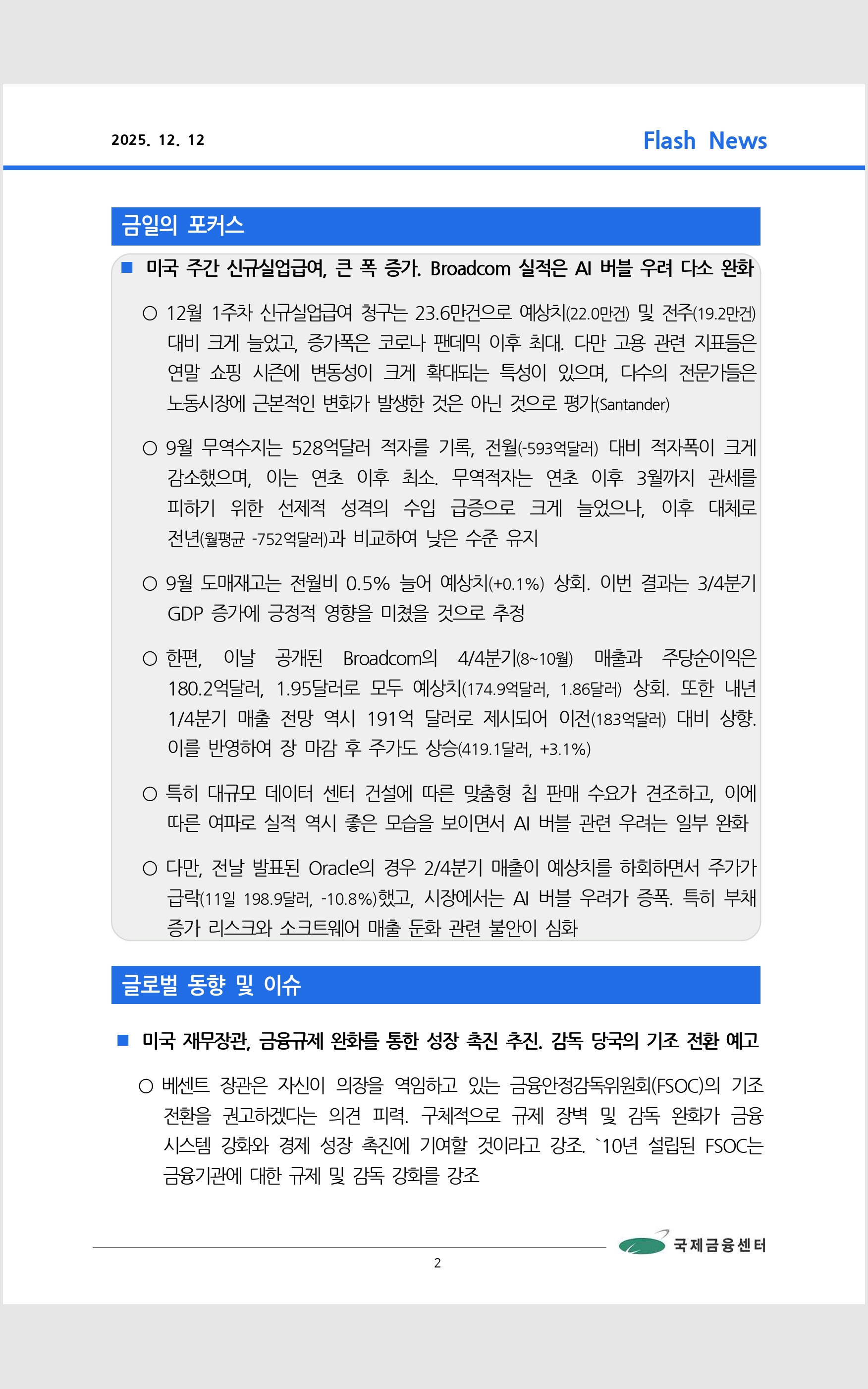 데일리 브리핑 ('25.12.9 국제금융센터)