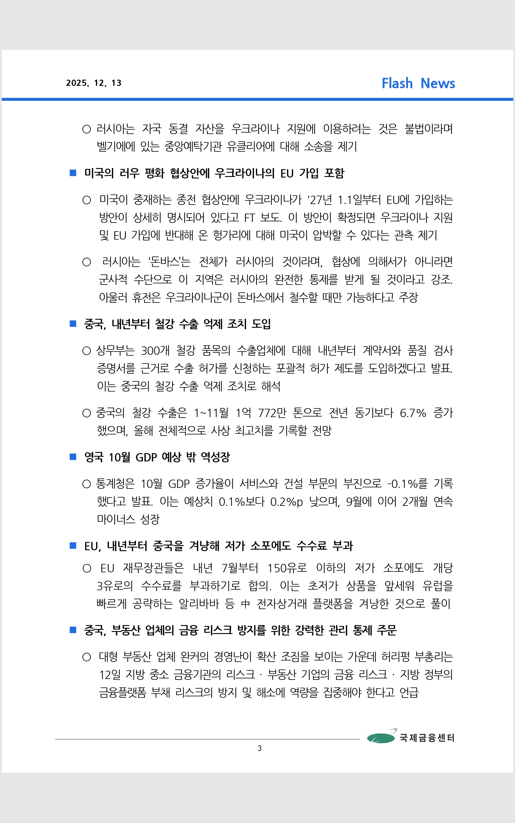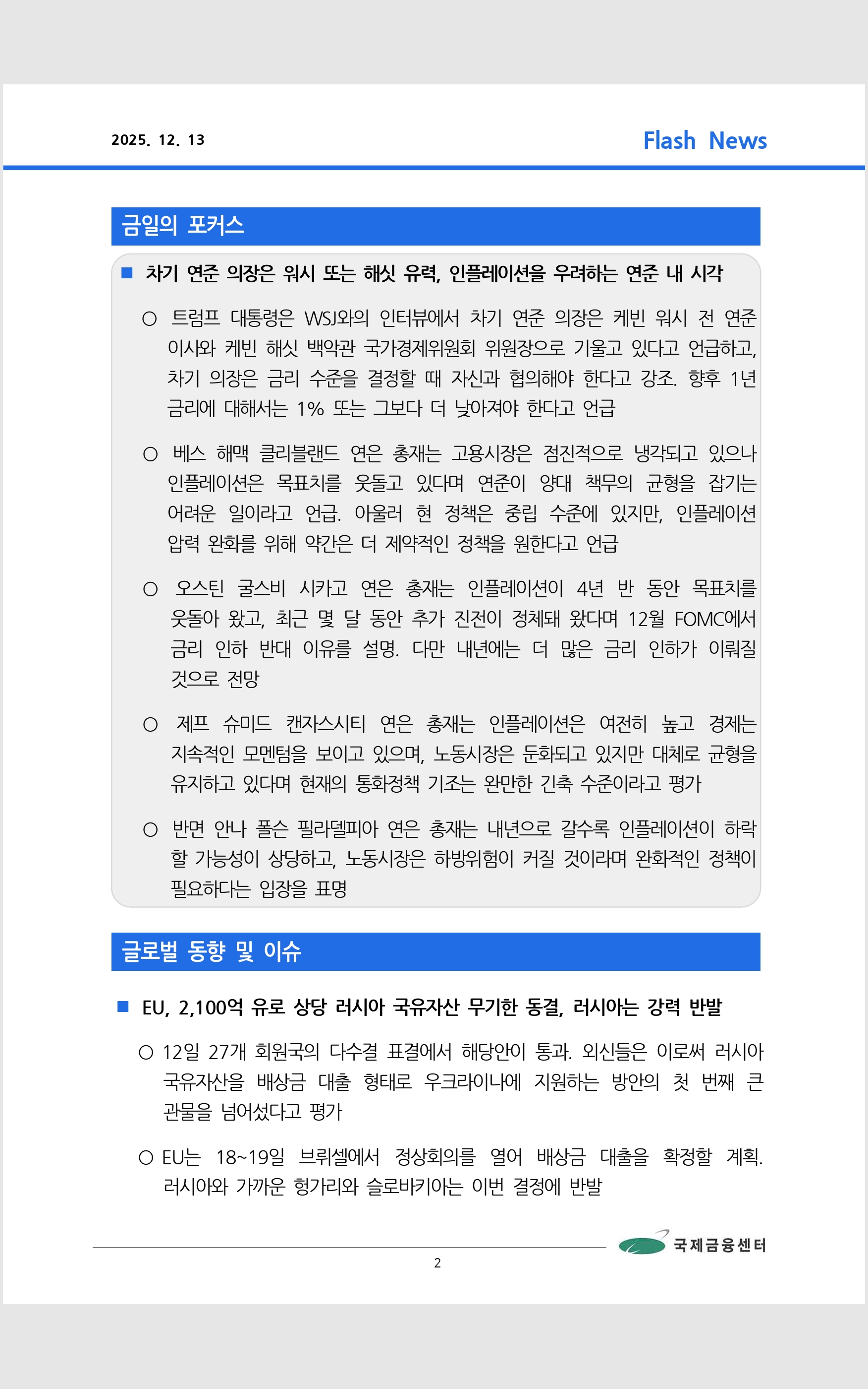 데일리 브리핑 ('25.12.13 국제금융센터)