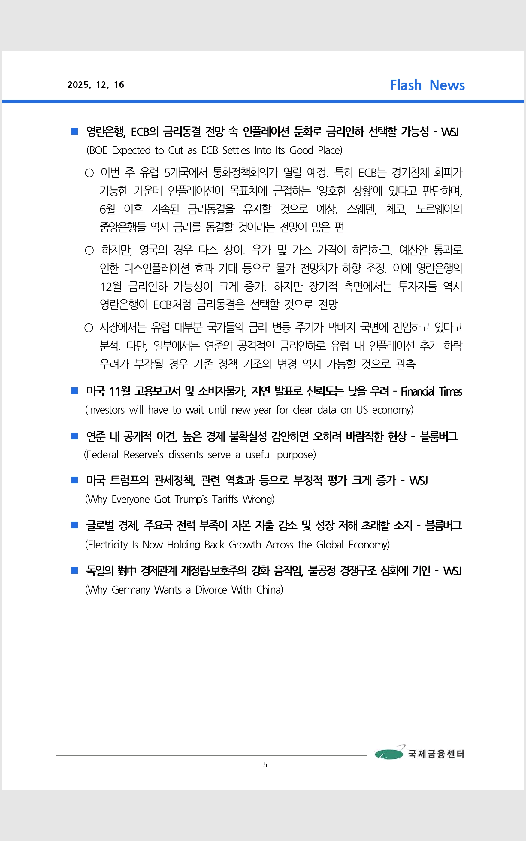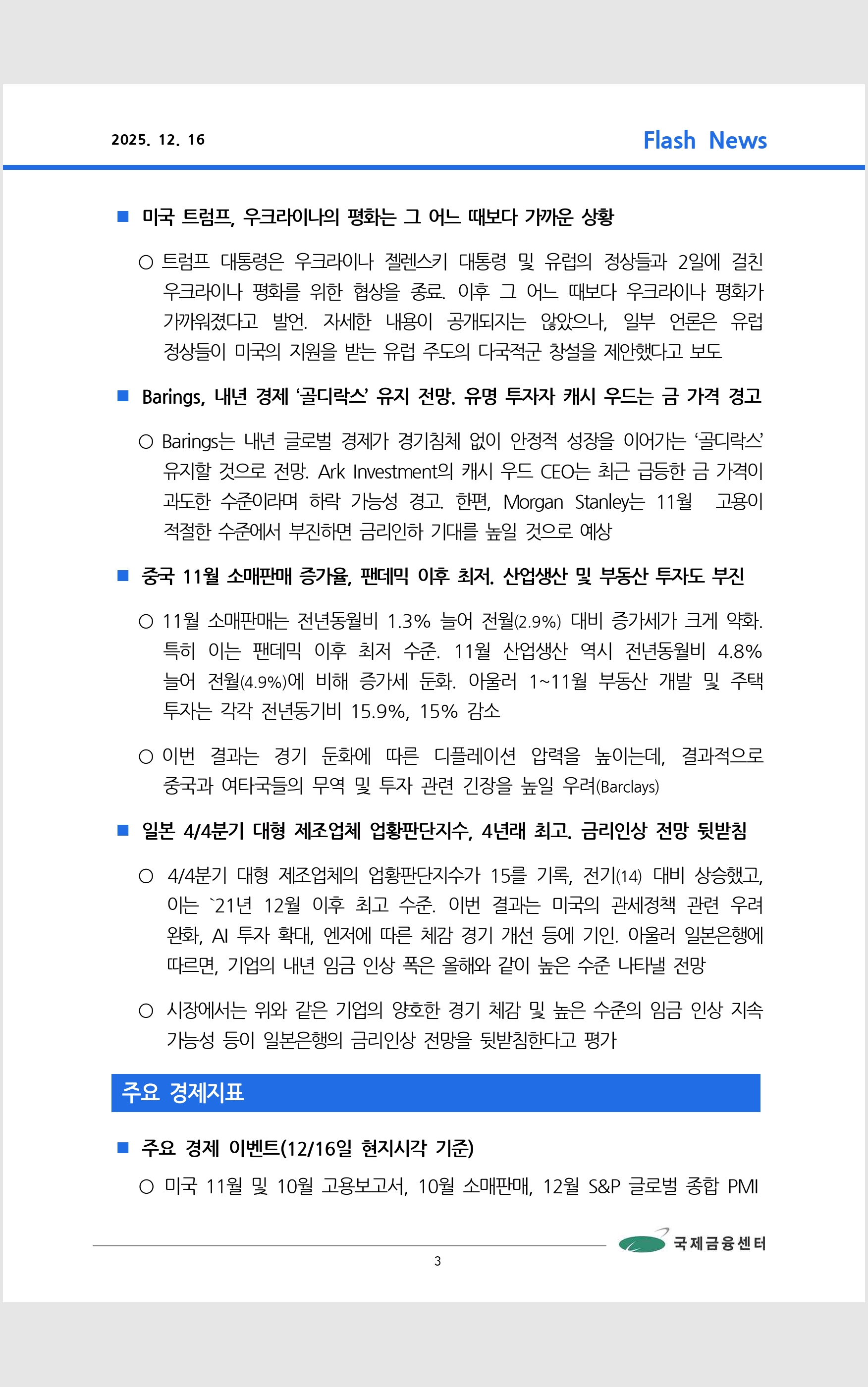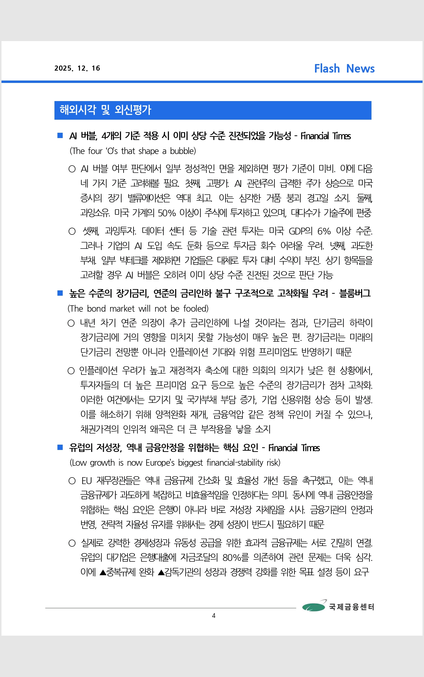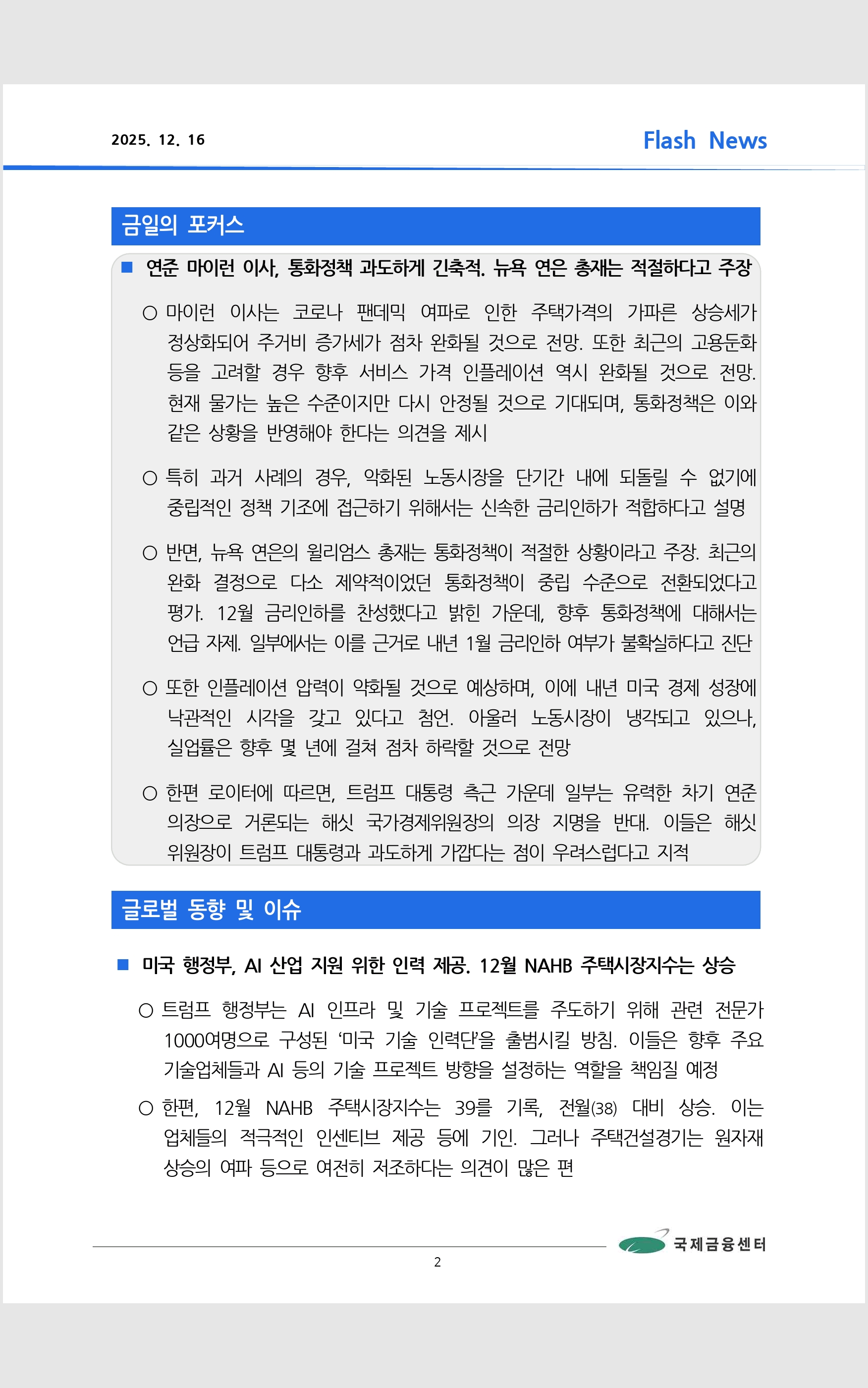 데일리 브리핑 ('25.12.16 국제금융센터)