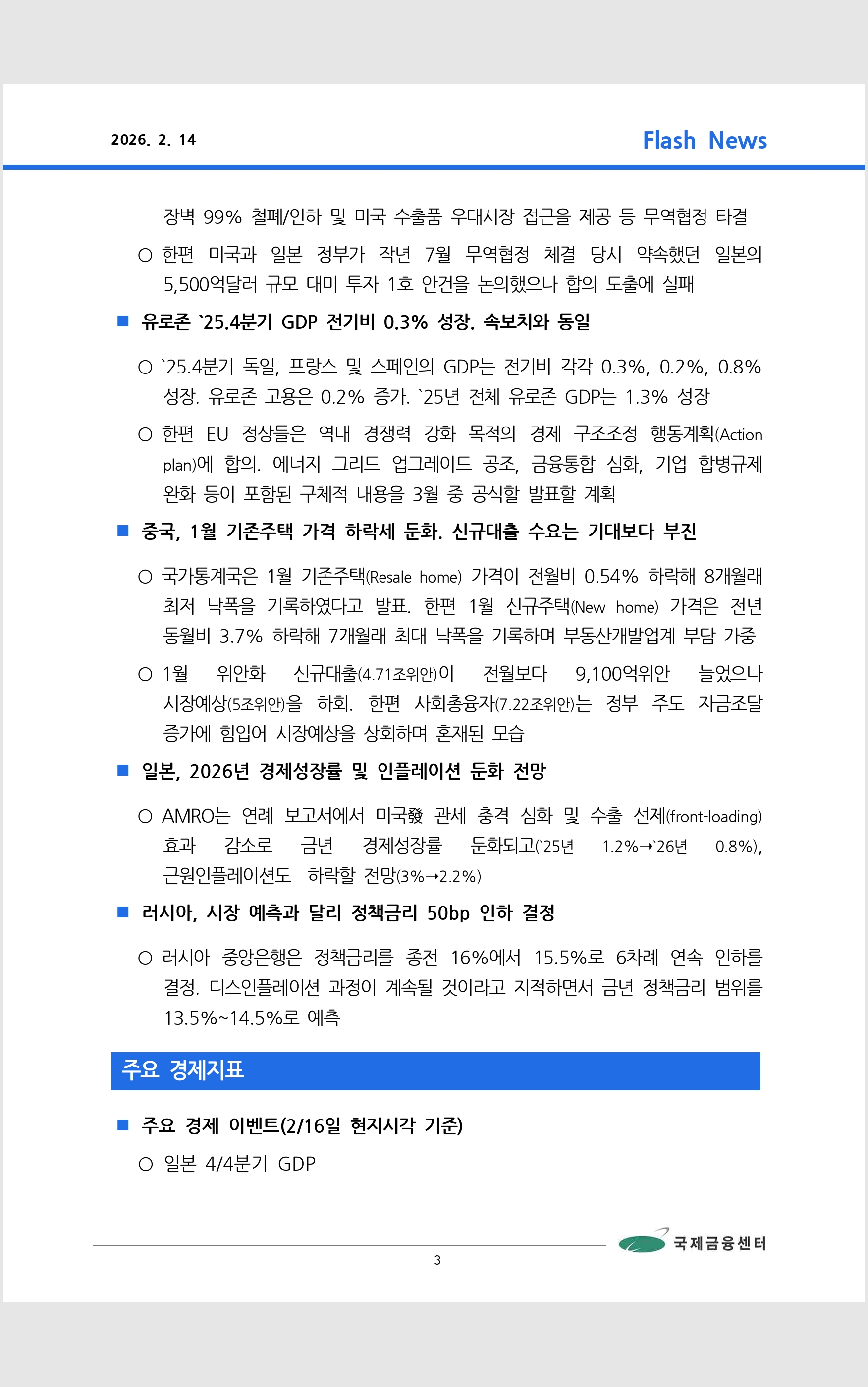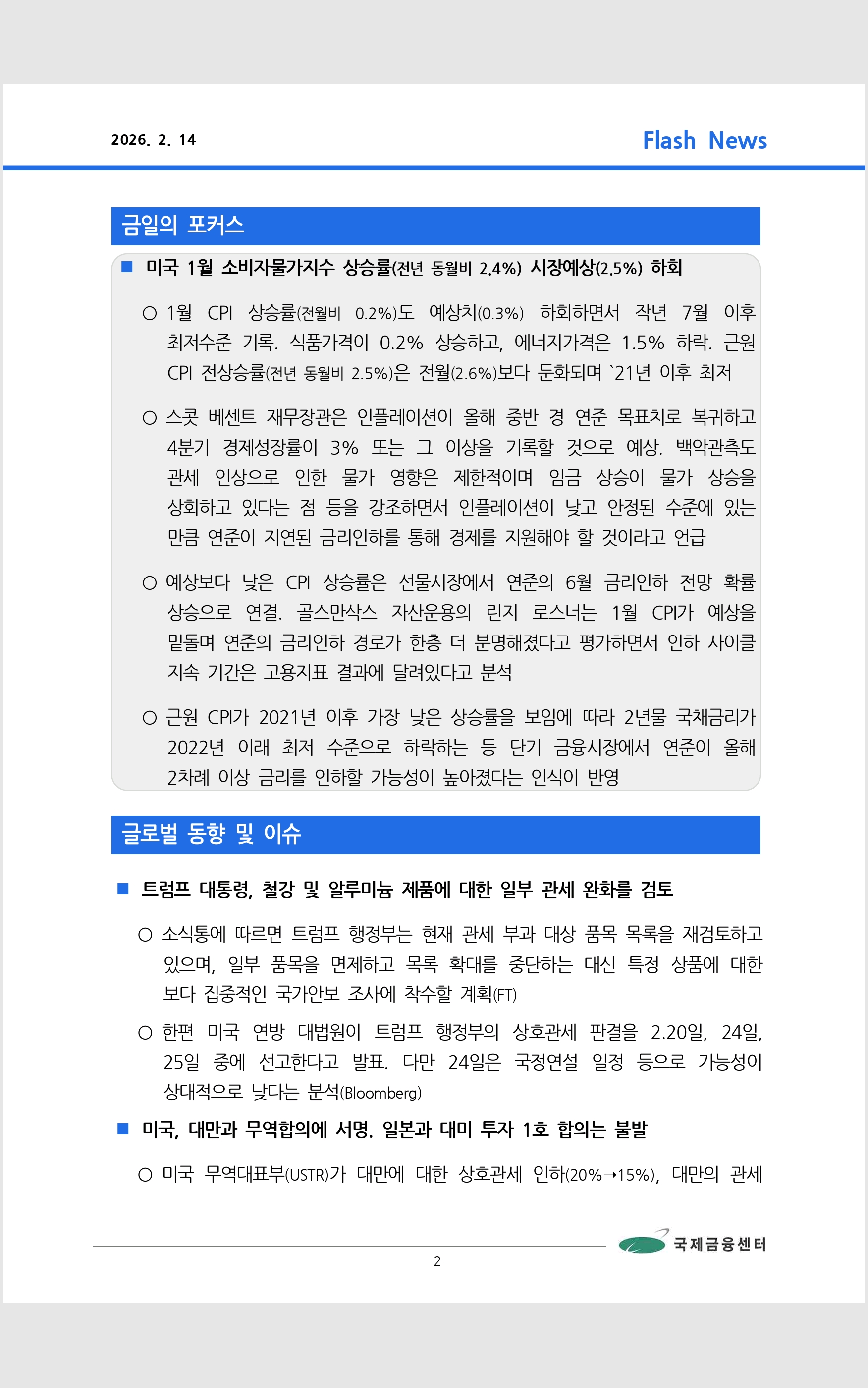 데일리 브리핑 ('26.2.14 국제금융센터)
