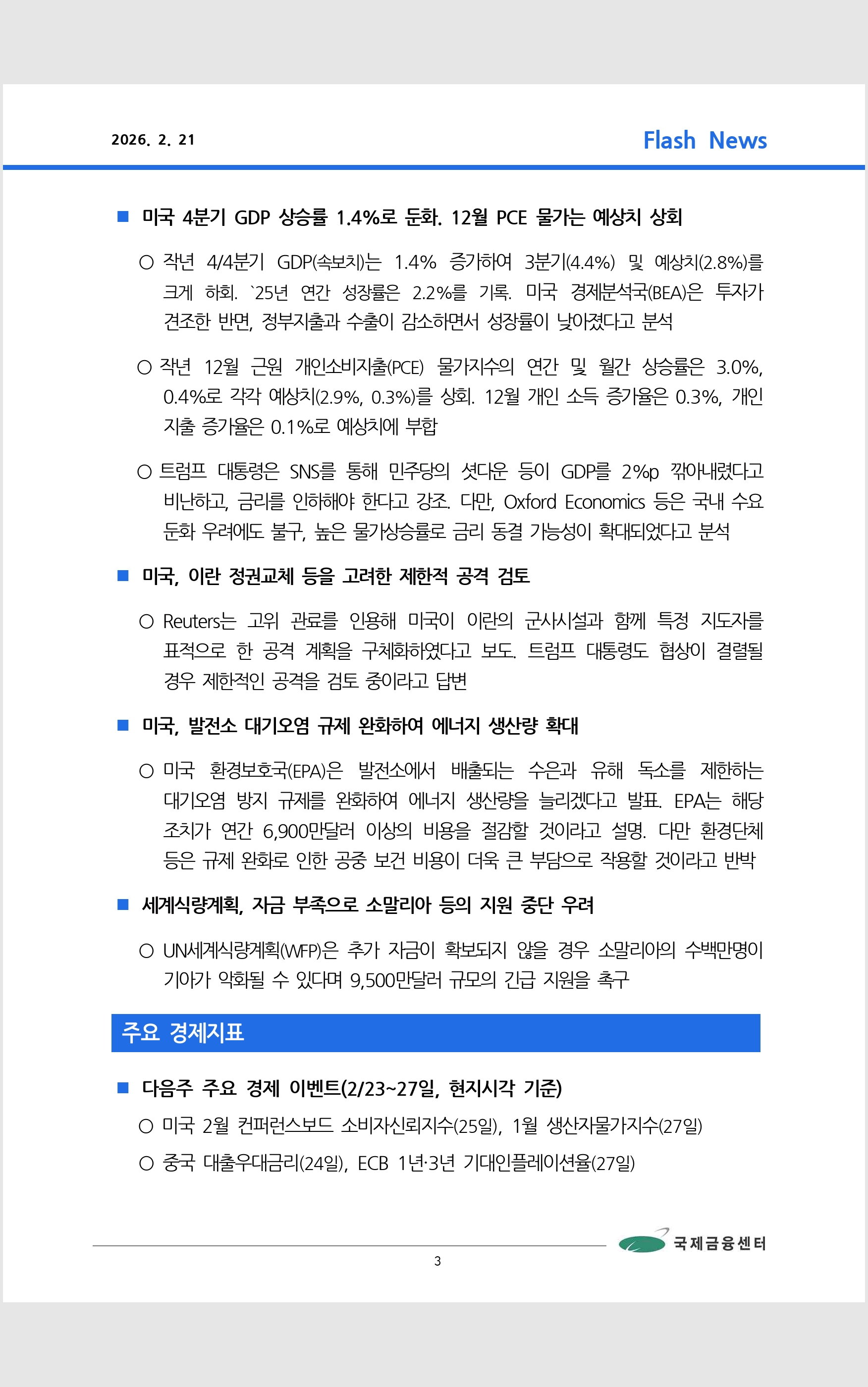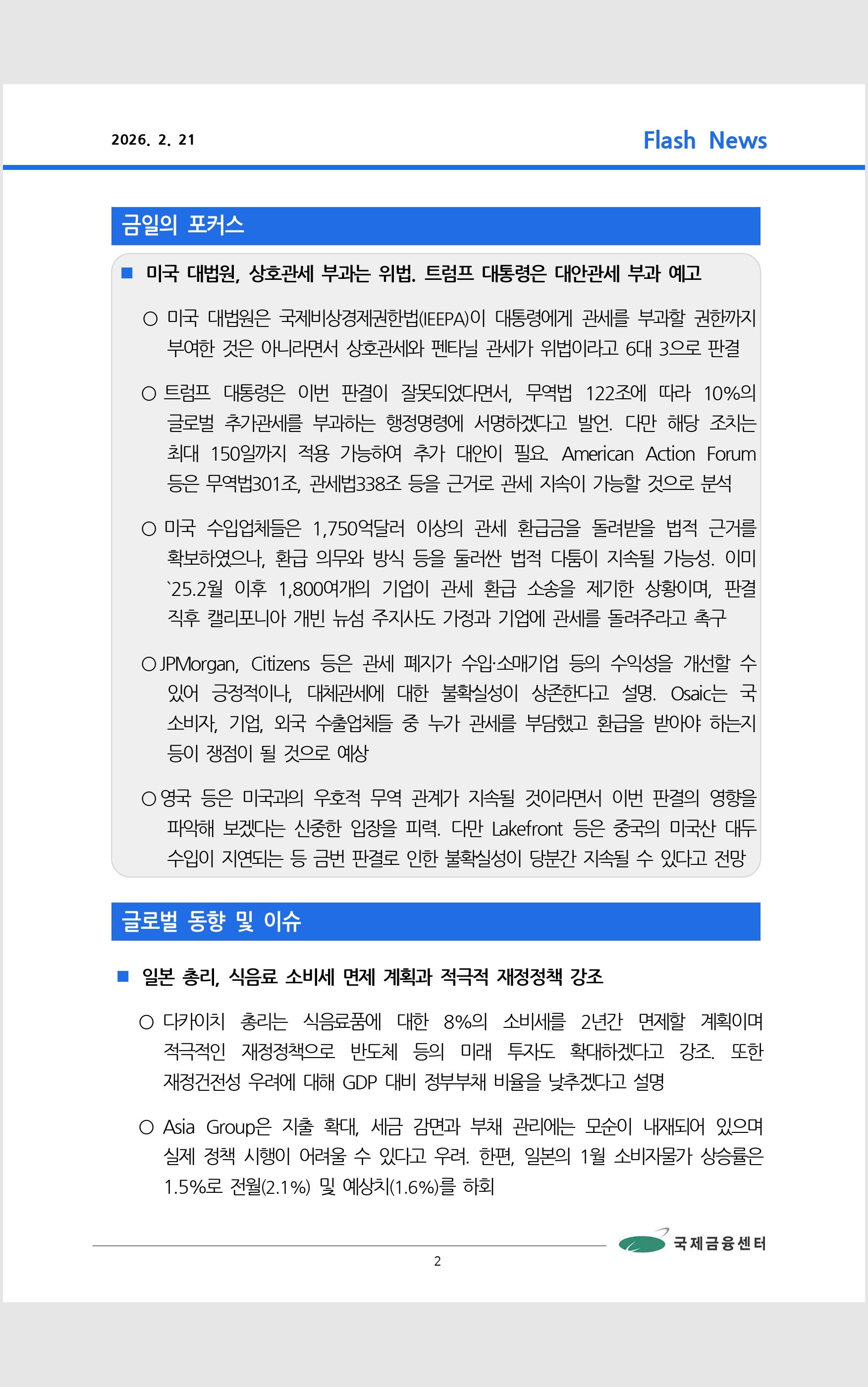 데일리 브리핑 ('26.2.21 국제금융센터)