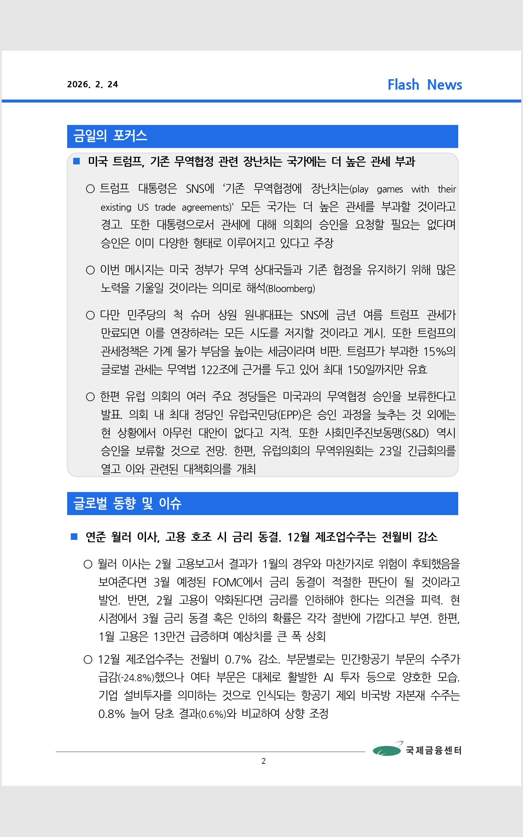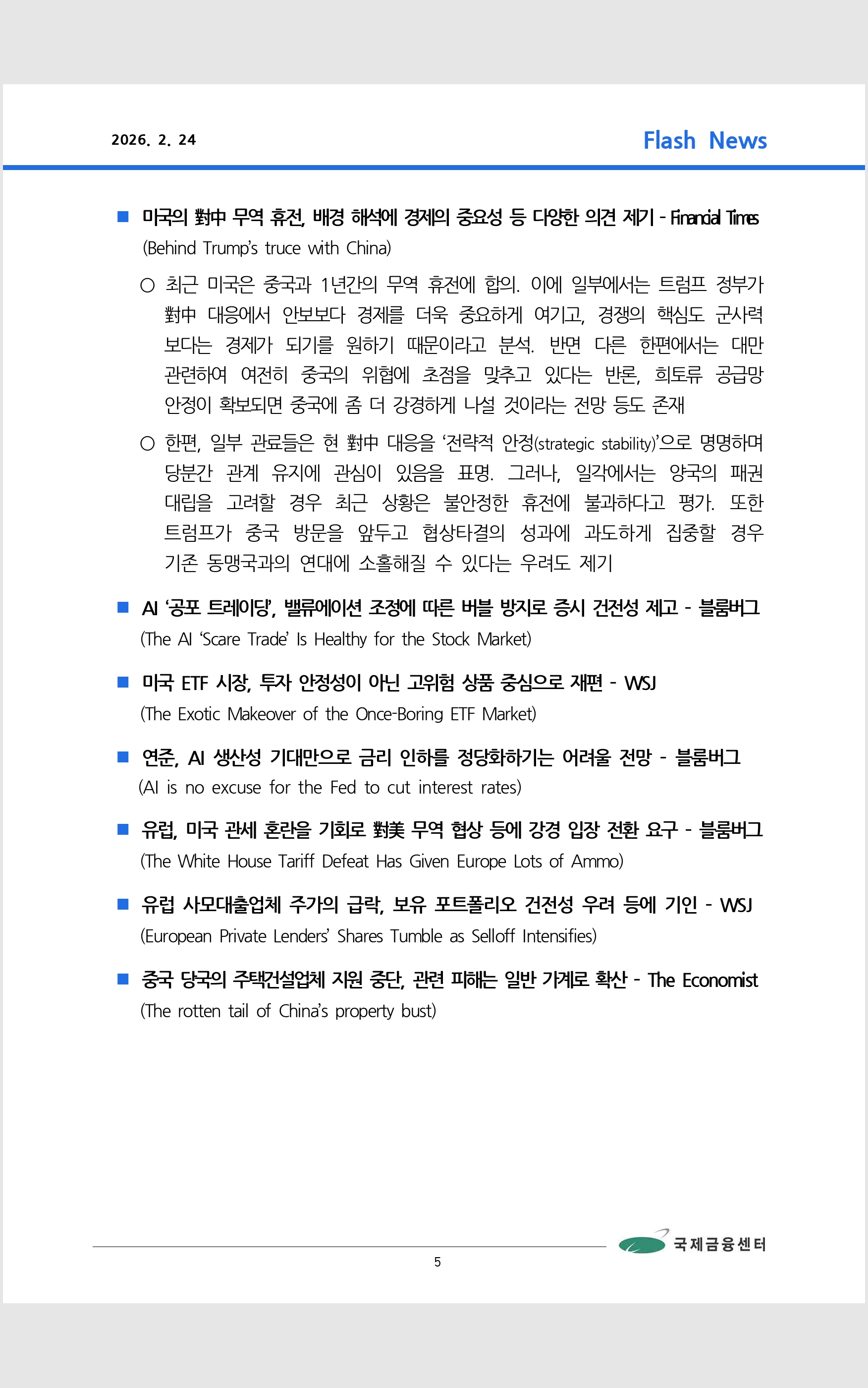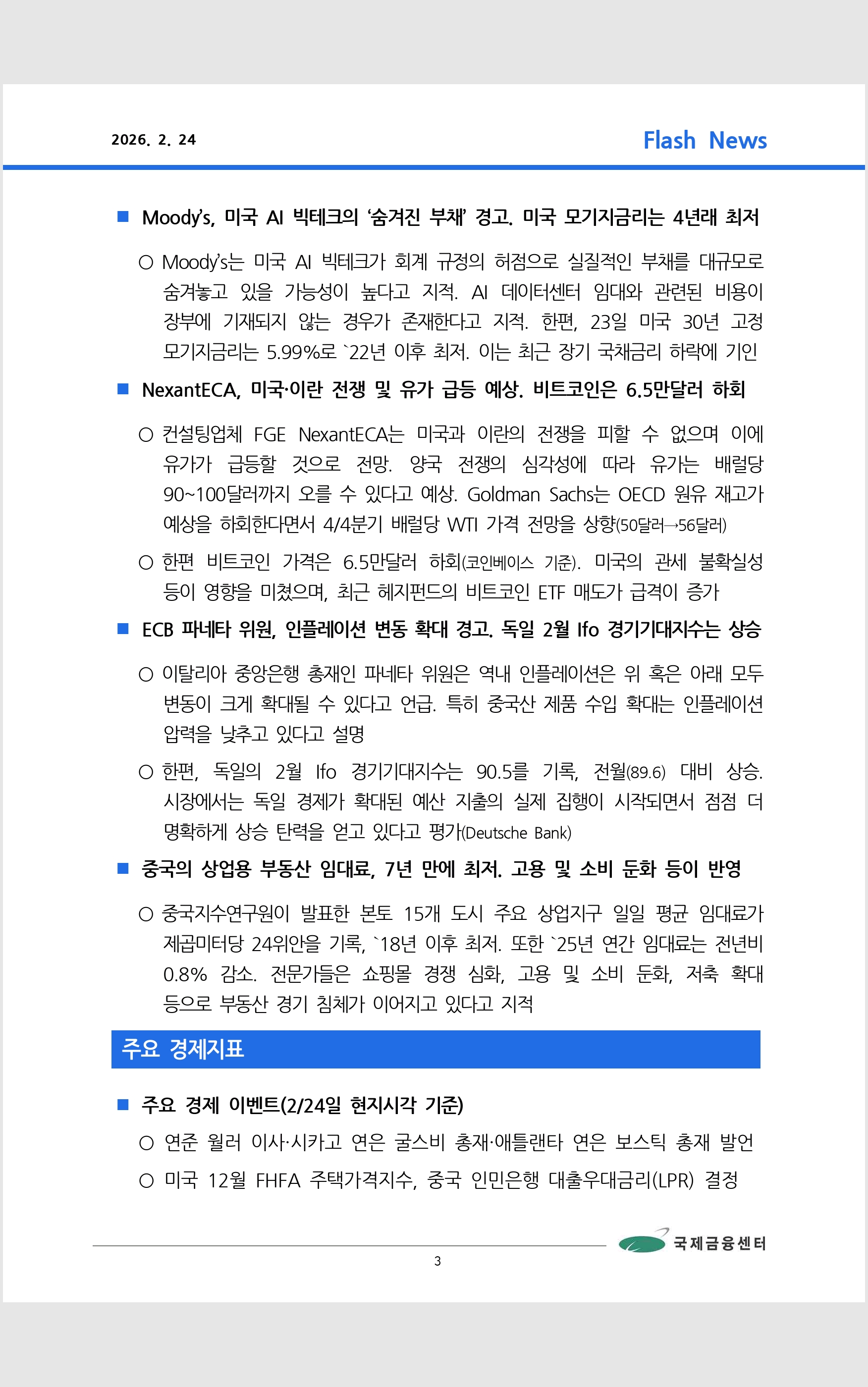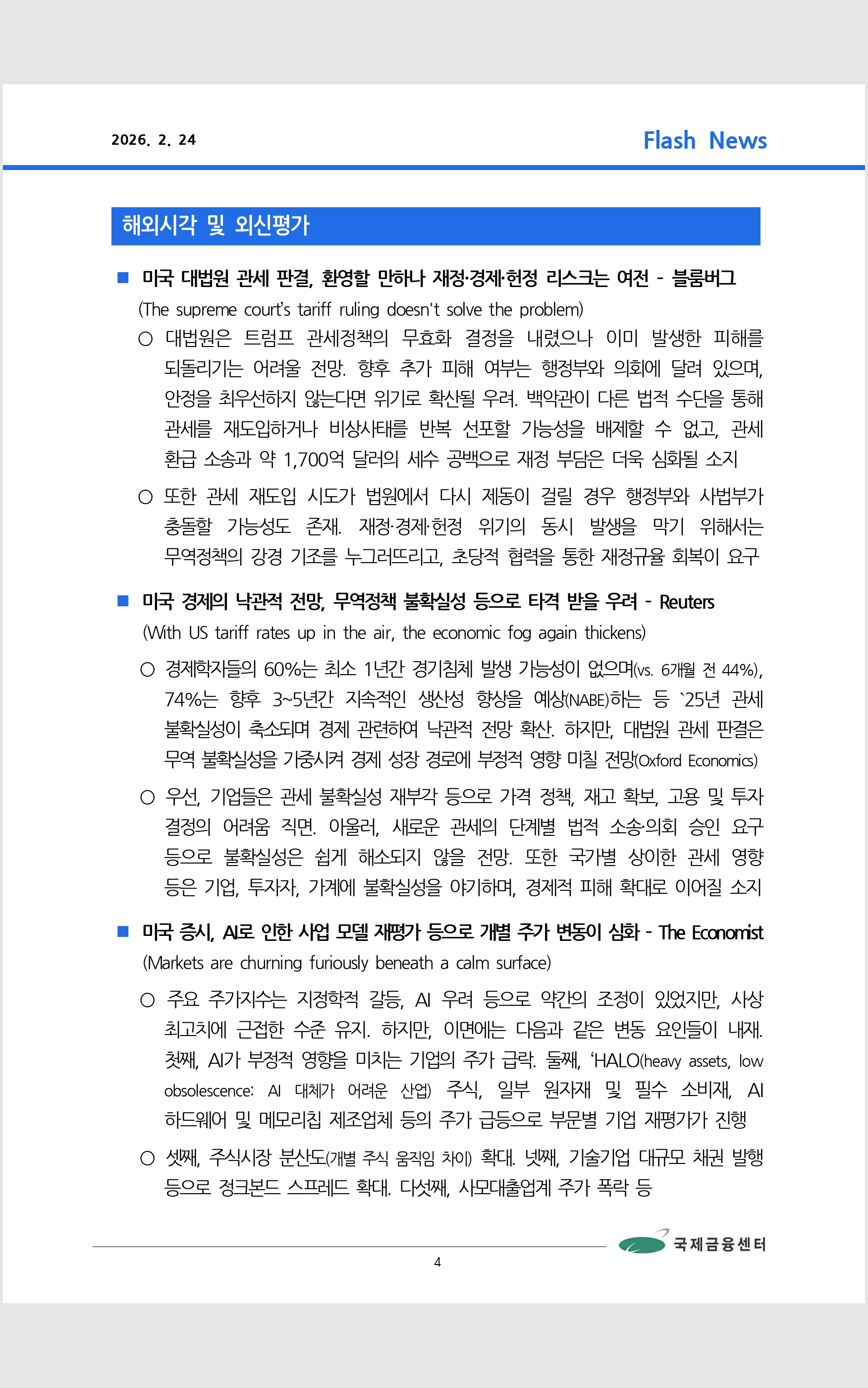 데일리 브리핑 ('26.2.24 국제금융센터)