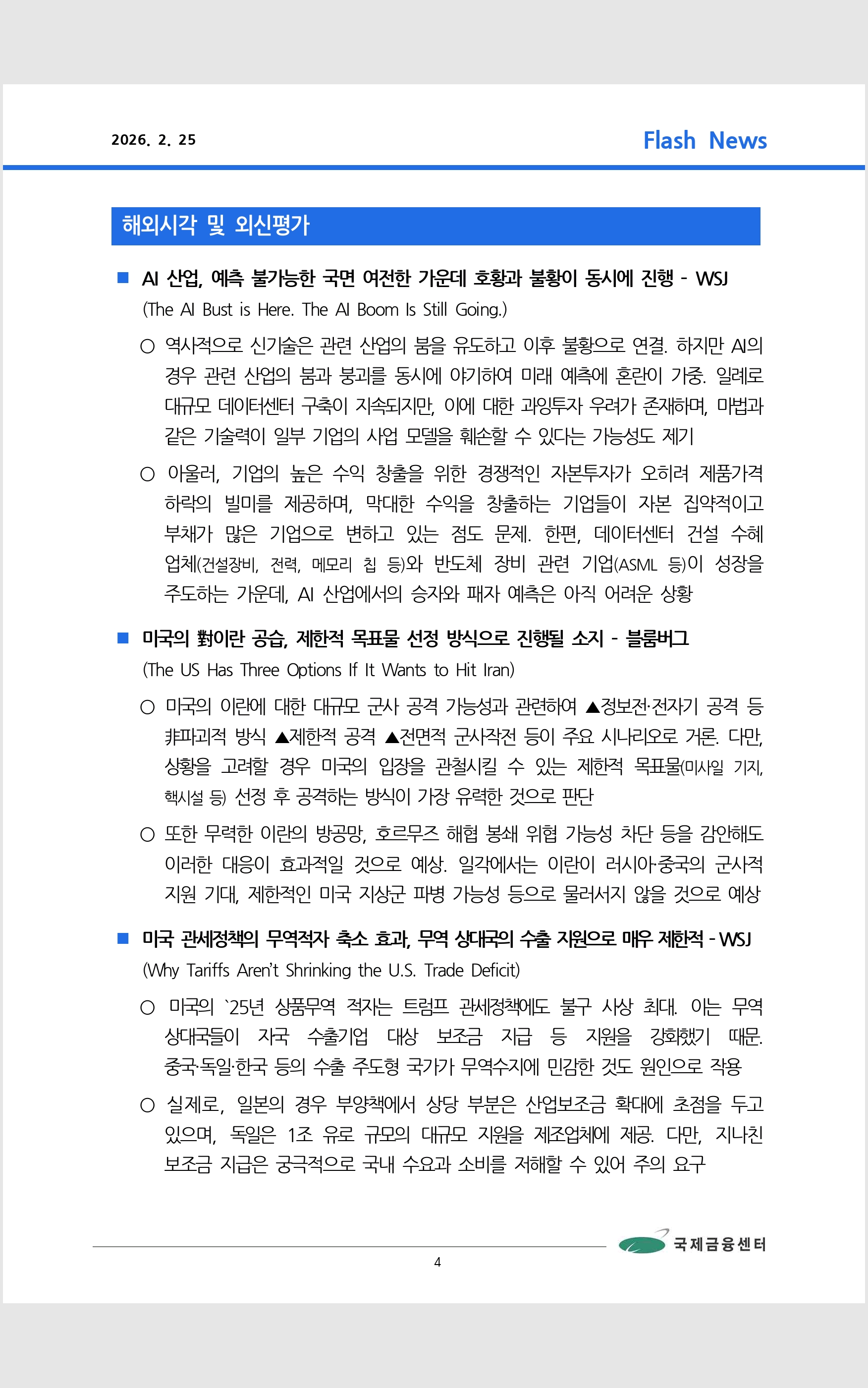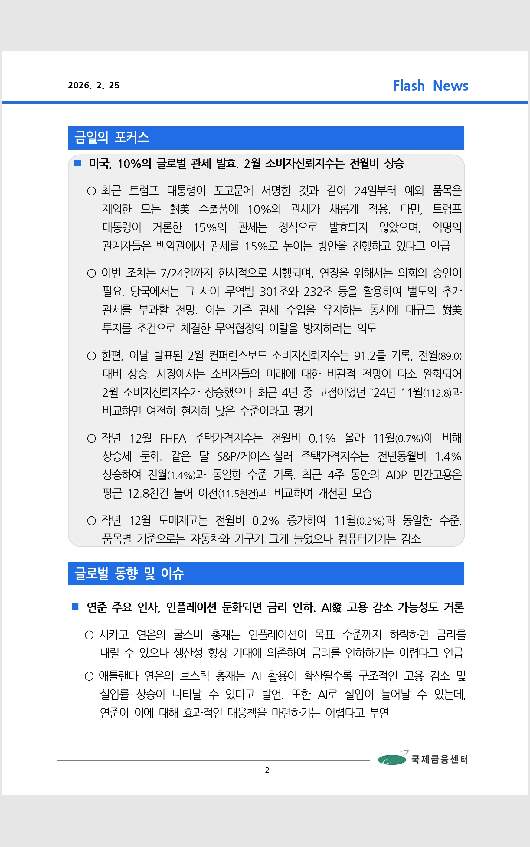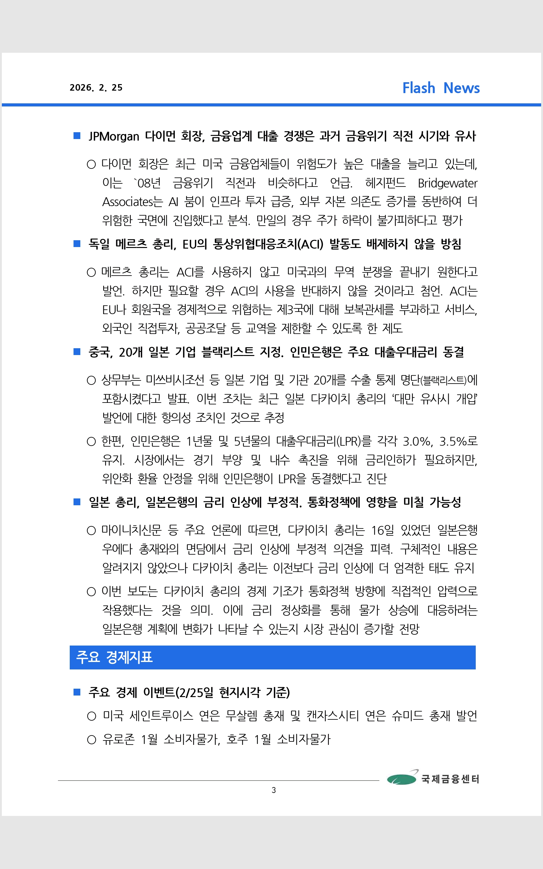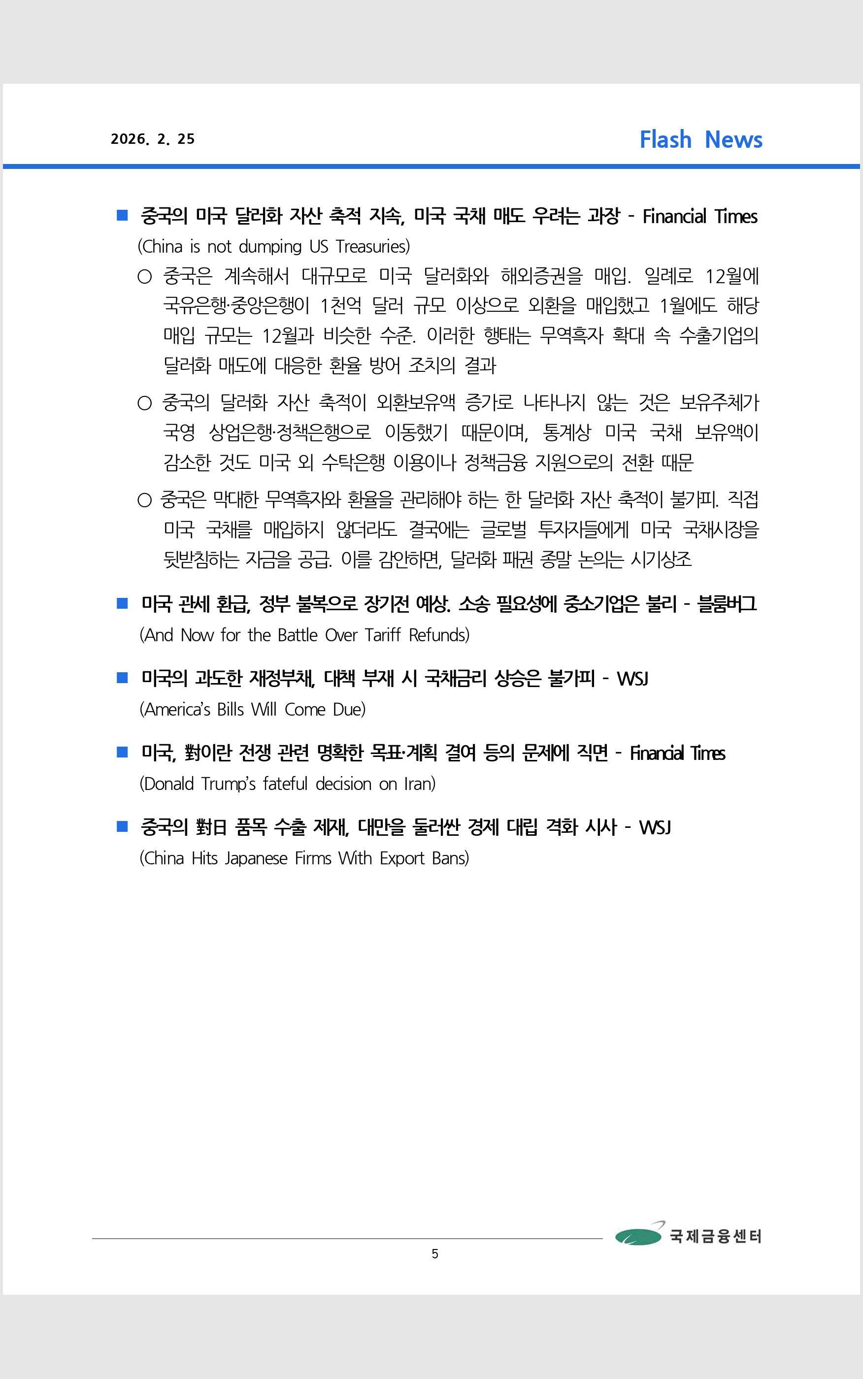 데일리 브리핑 ('26.2.25 국제금융센터)