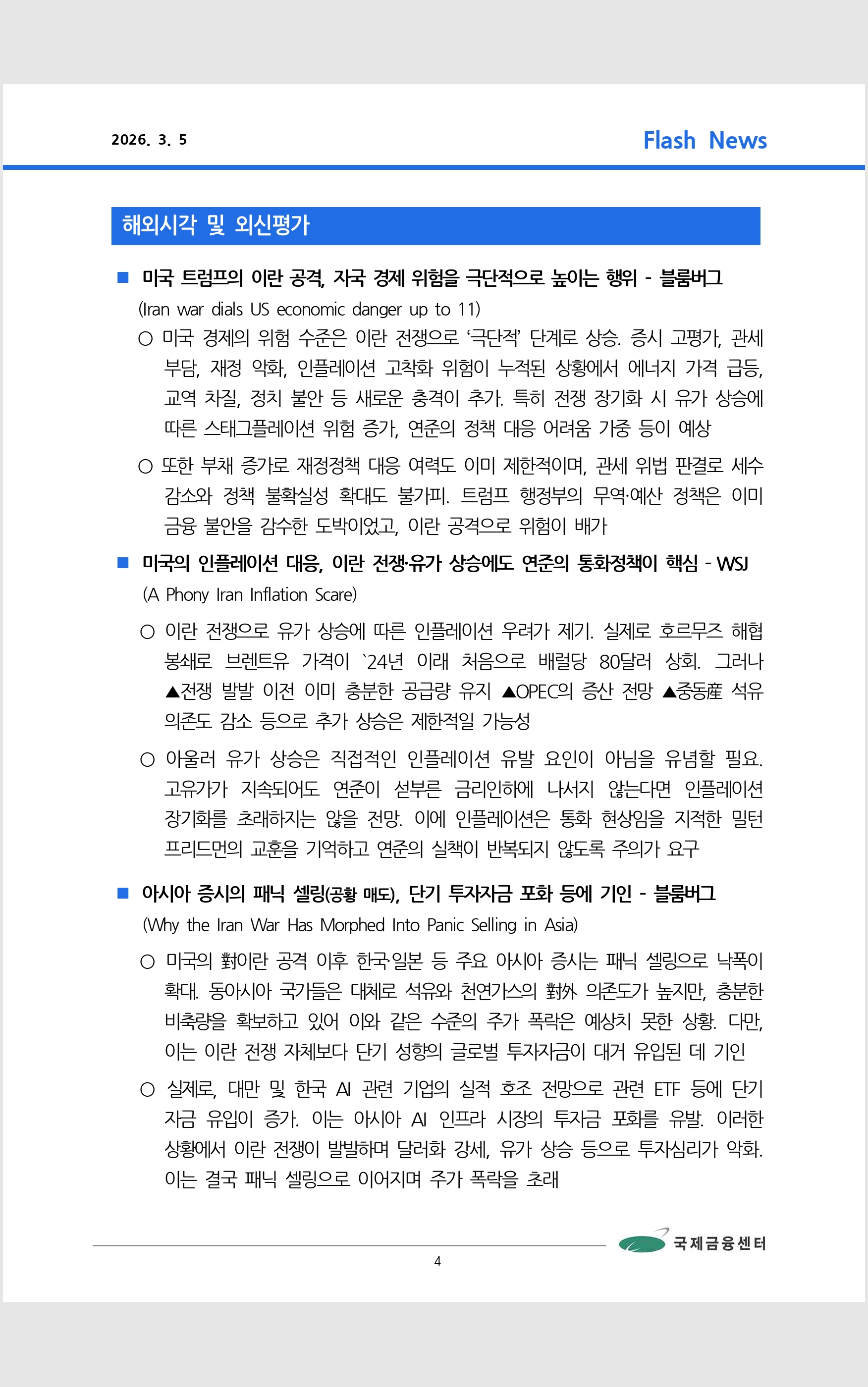 데일리 브리핑 ('26.3.4 국제금융센터)
