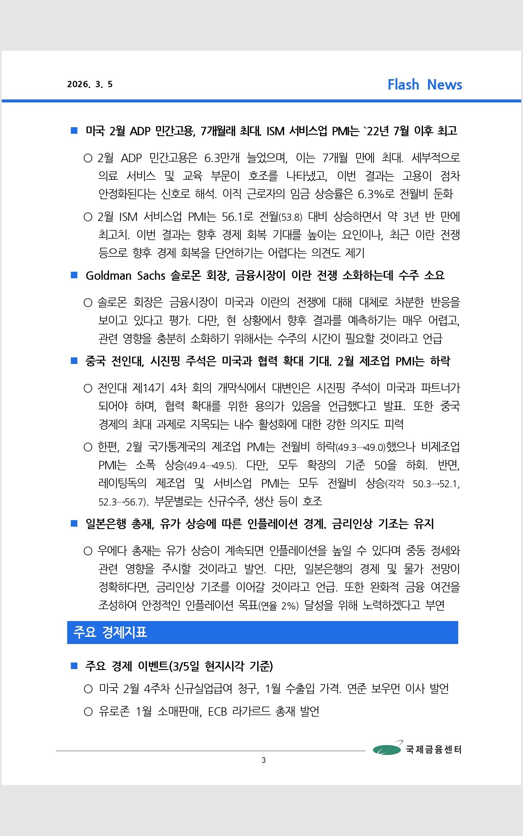 데일리 브리핑 ('26.3.3 국제금융센터)