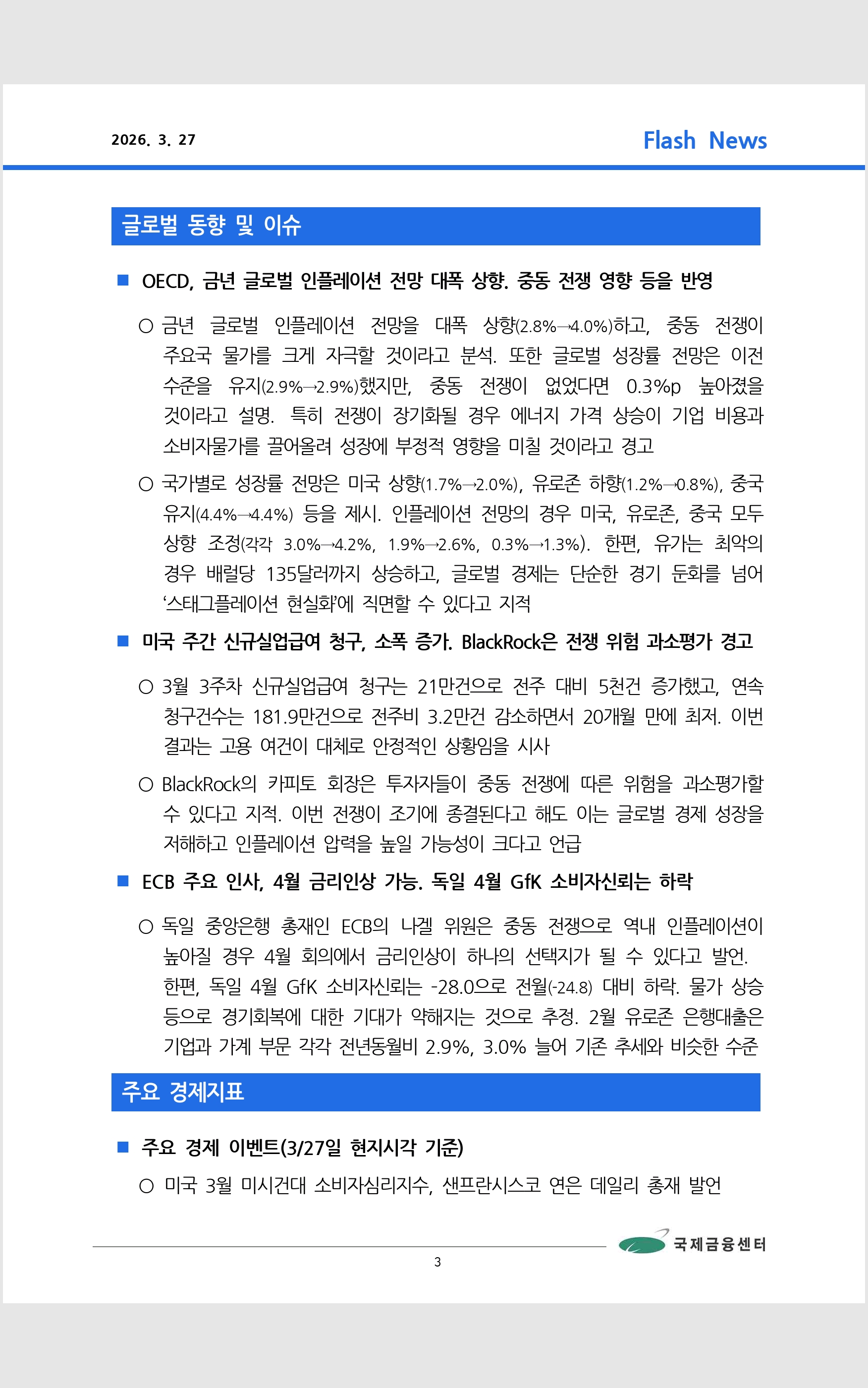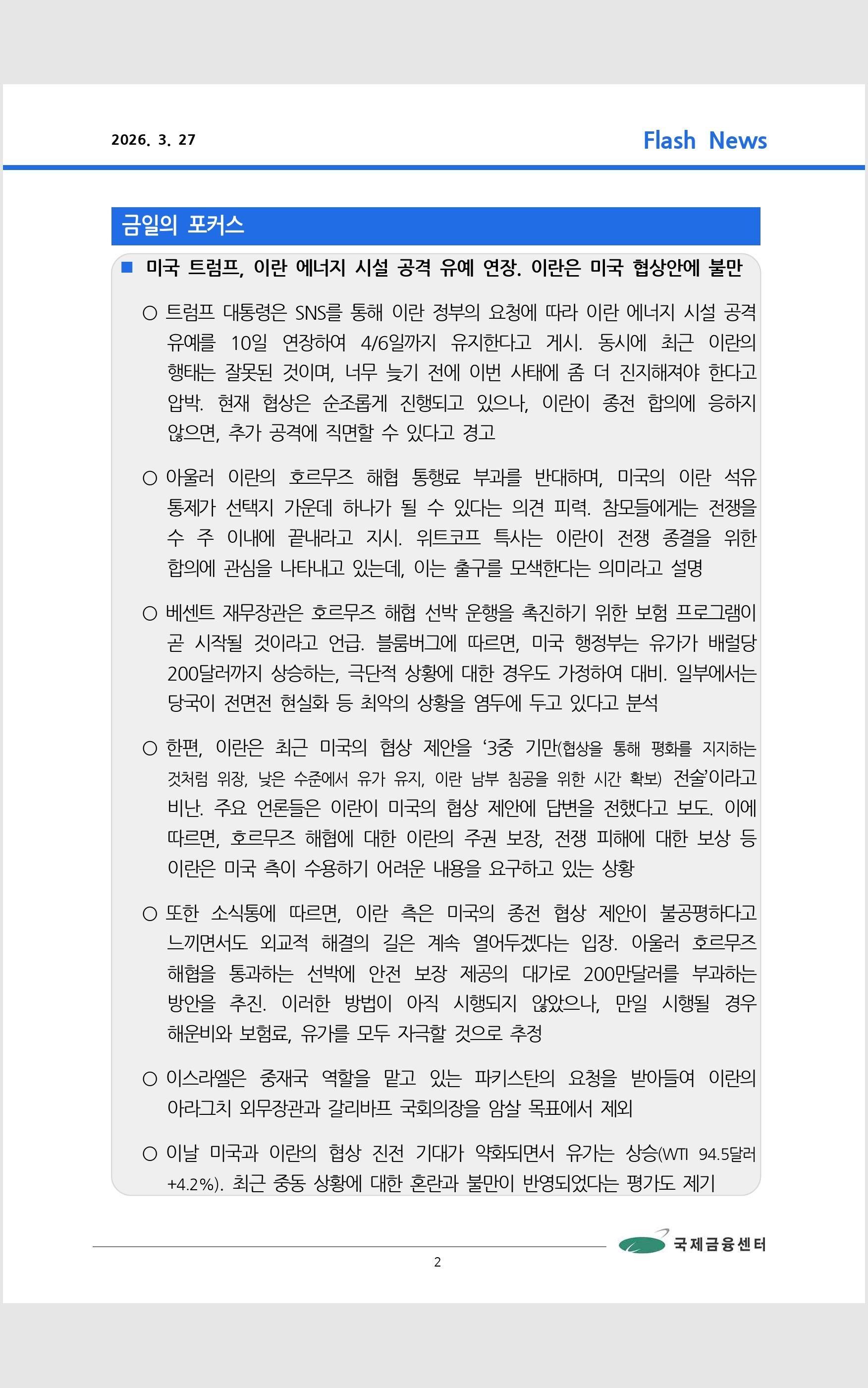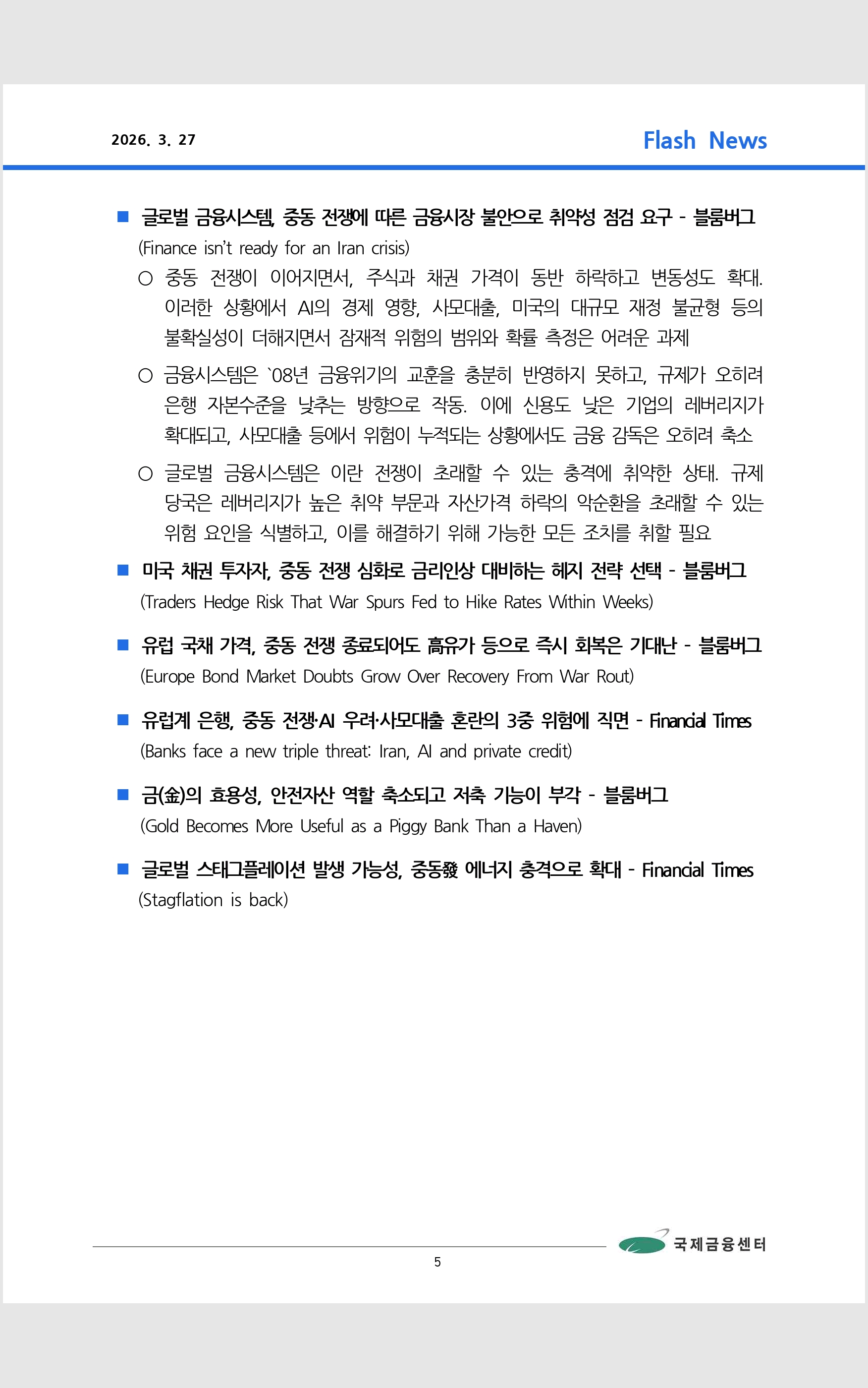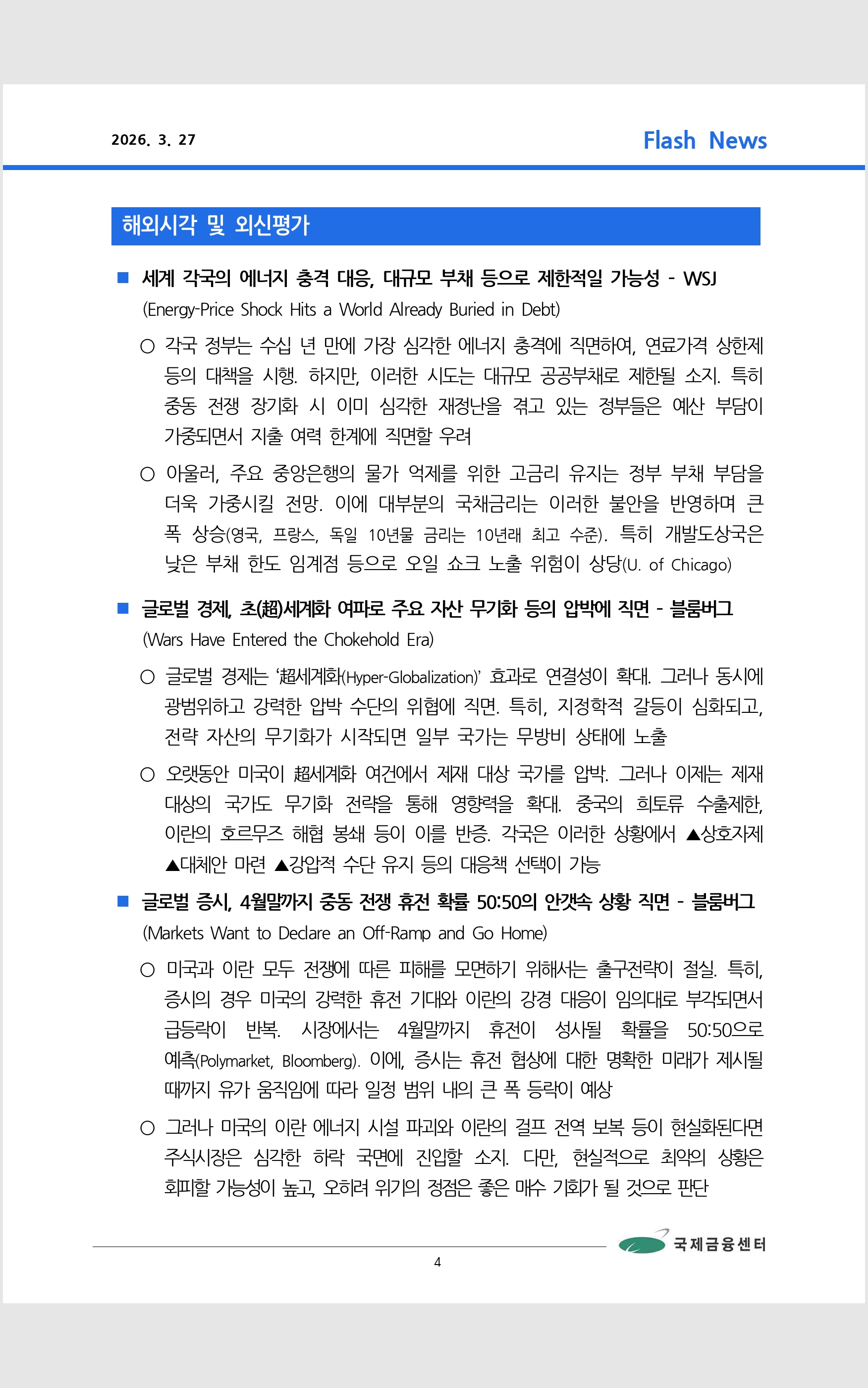 데일리 브리핑 ('26.3.27 국제금융센터)