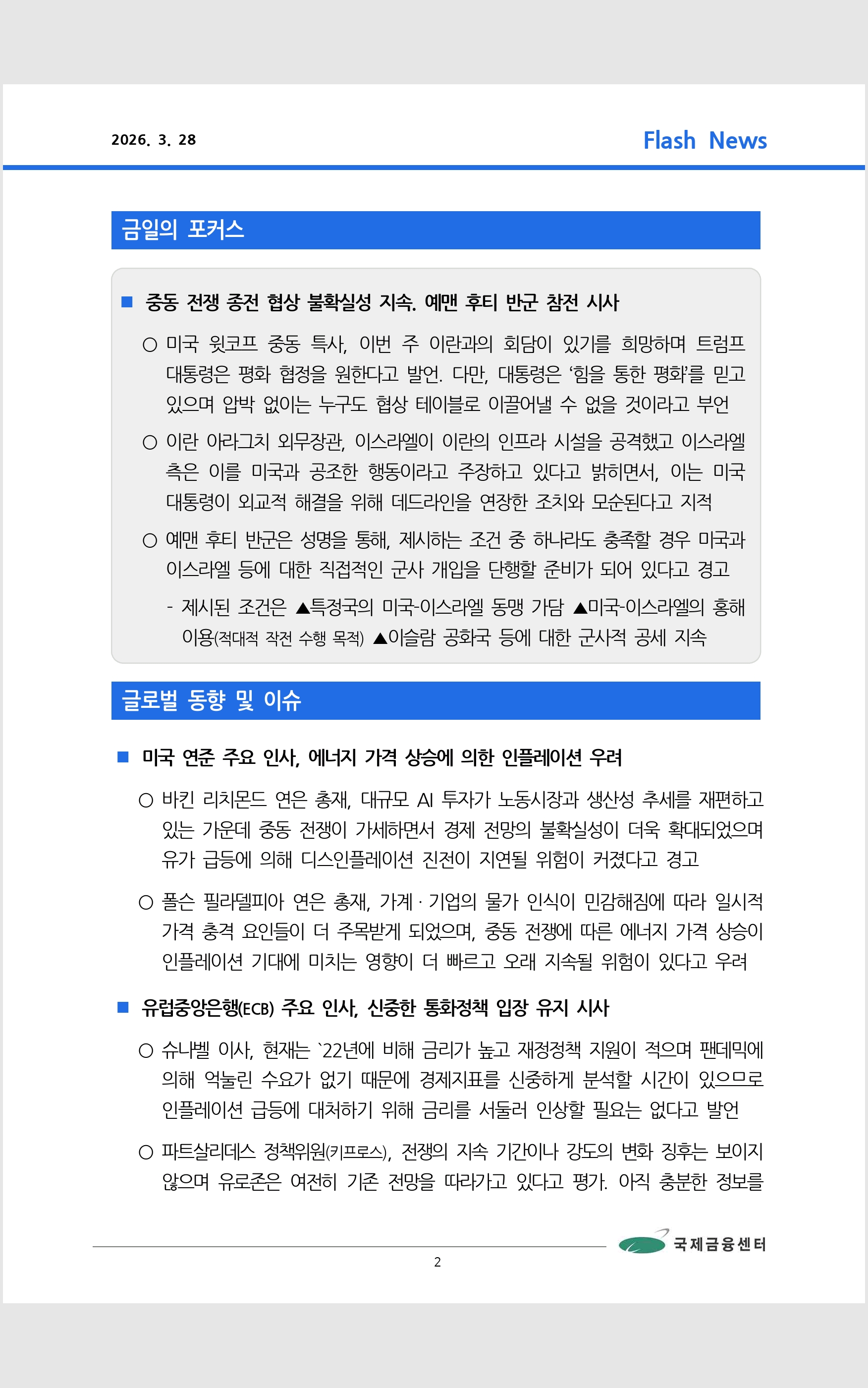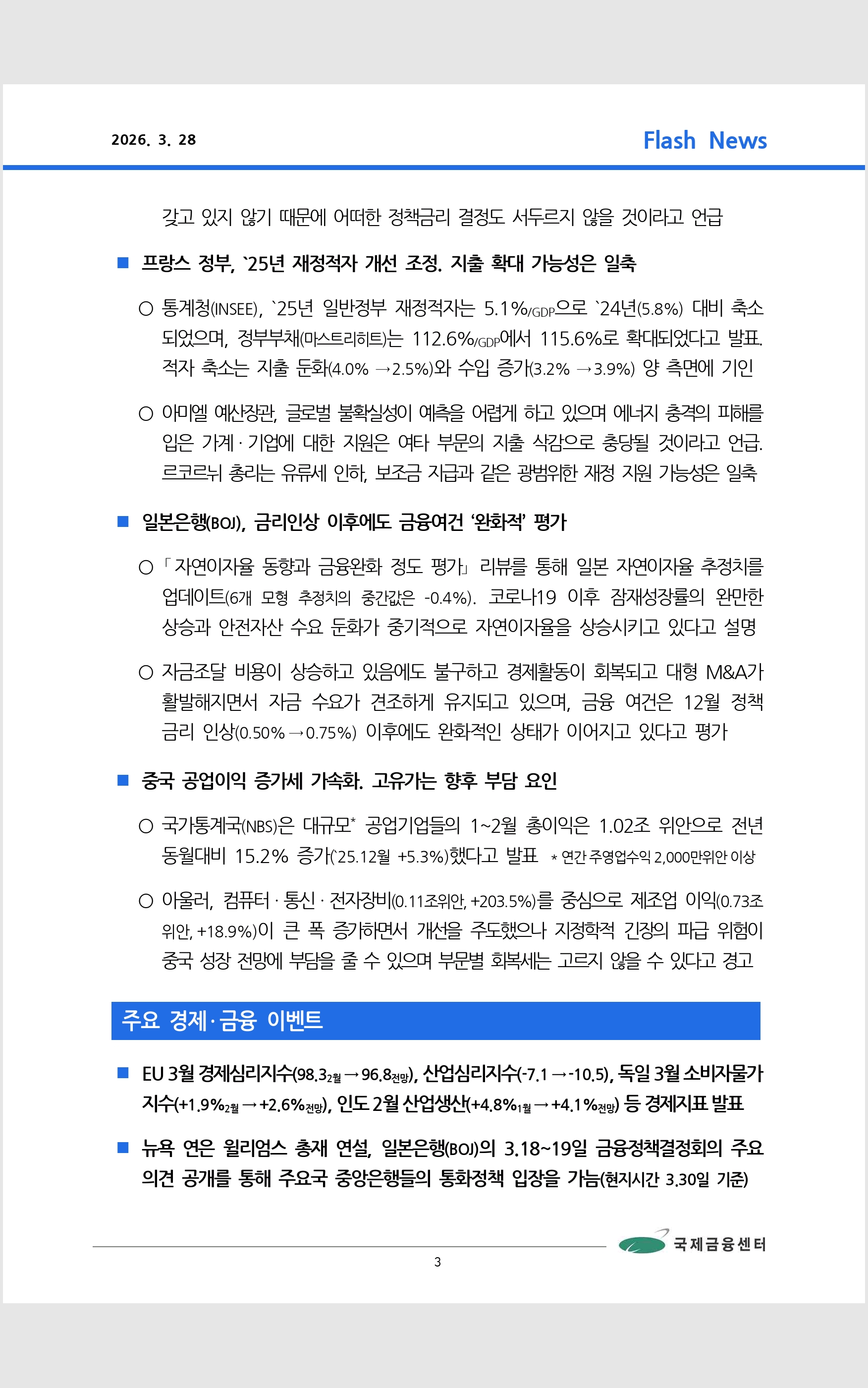 데일리 브리핑 ('26.3.28 국제금융센터)
