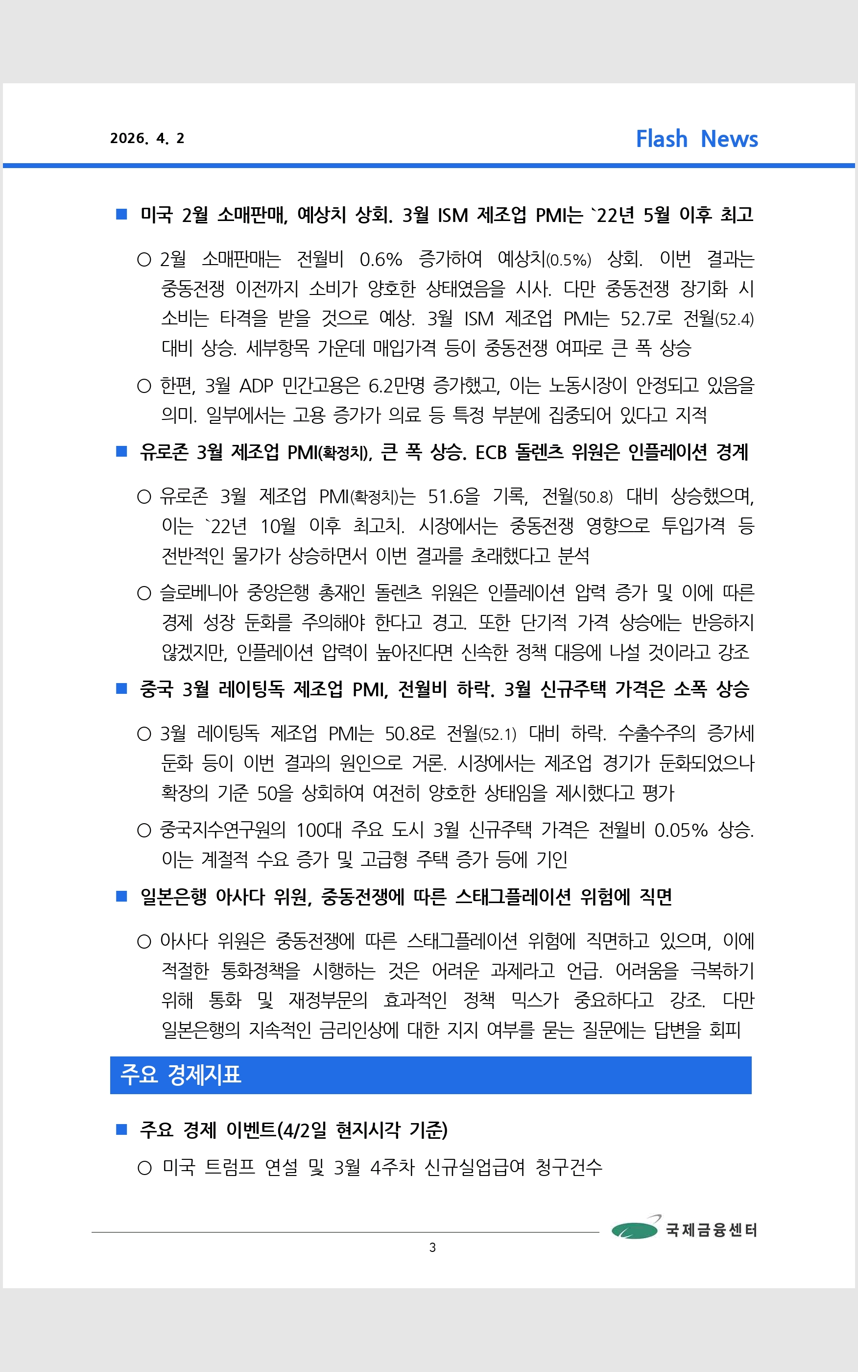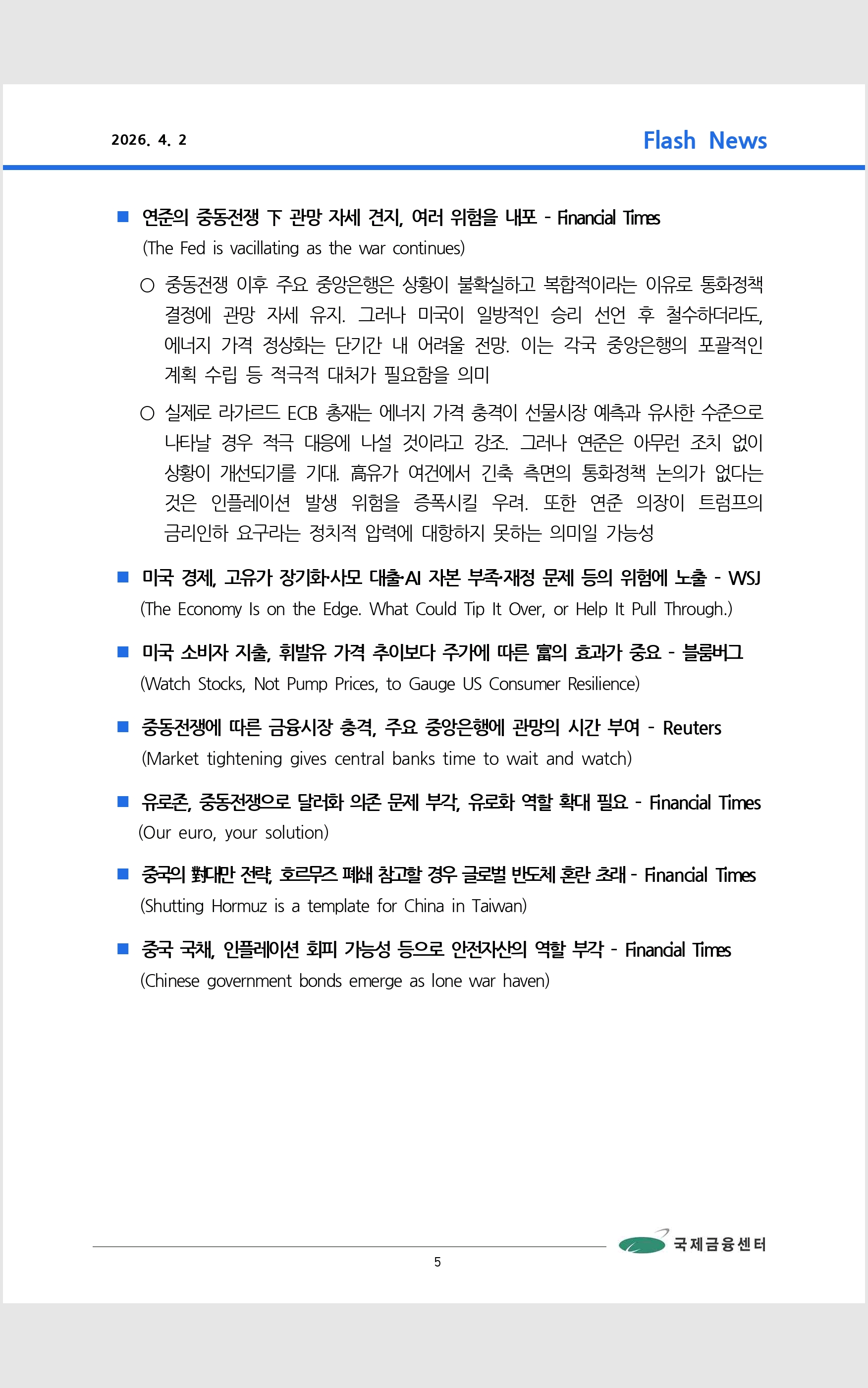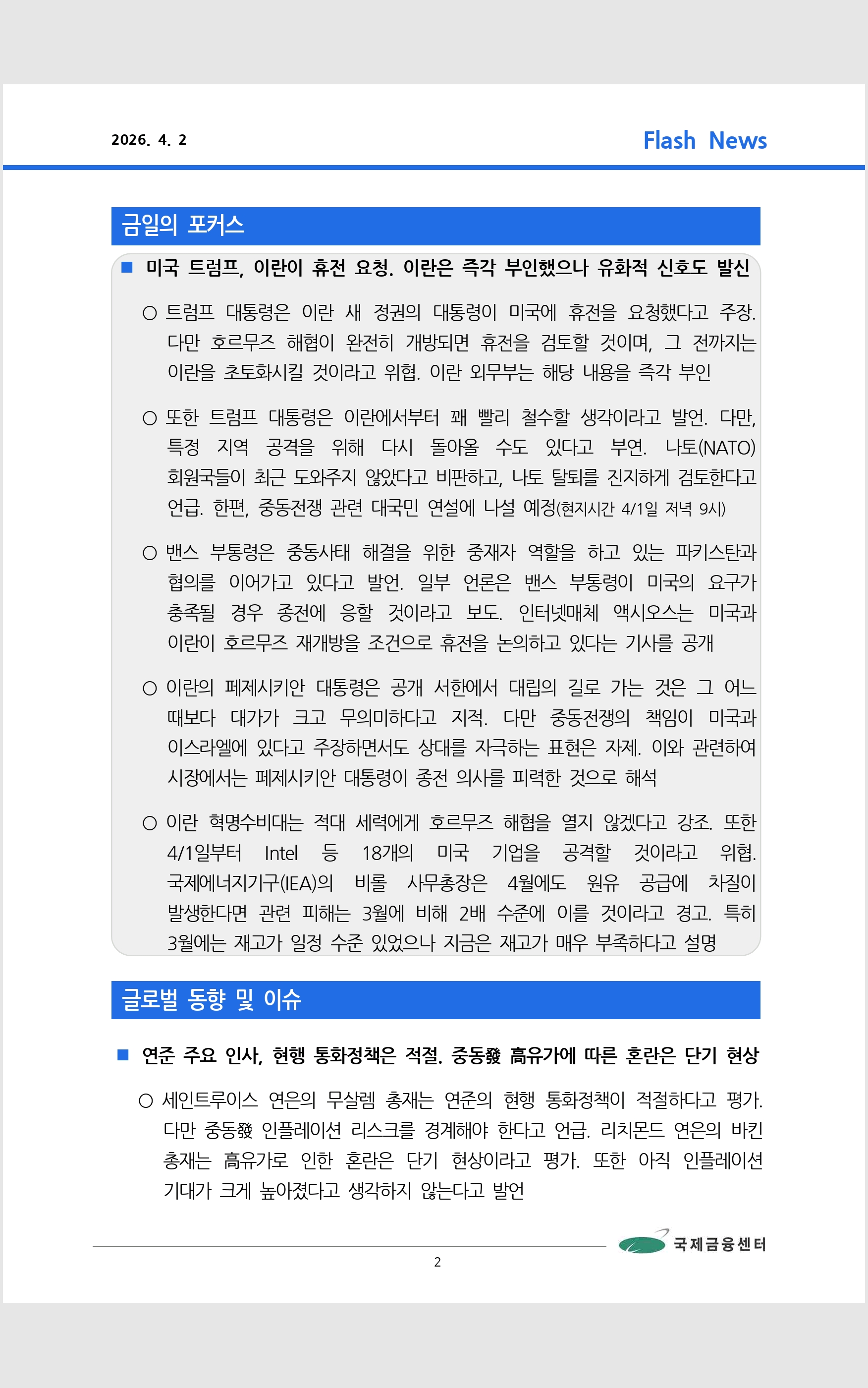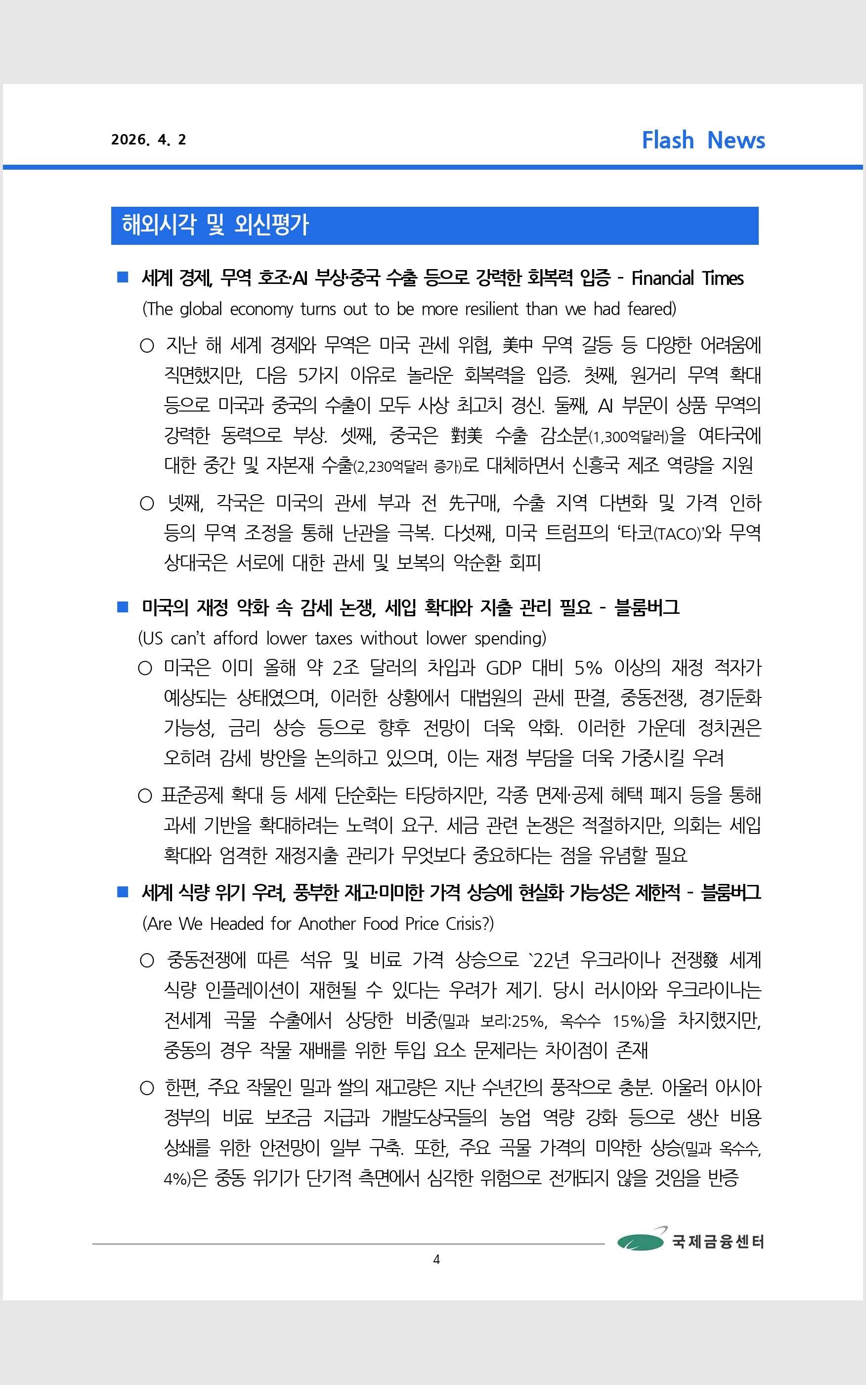 데일리 브리핑 ('26.4.2 국제금융센터)