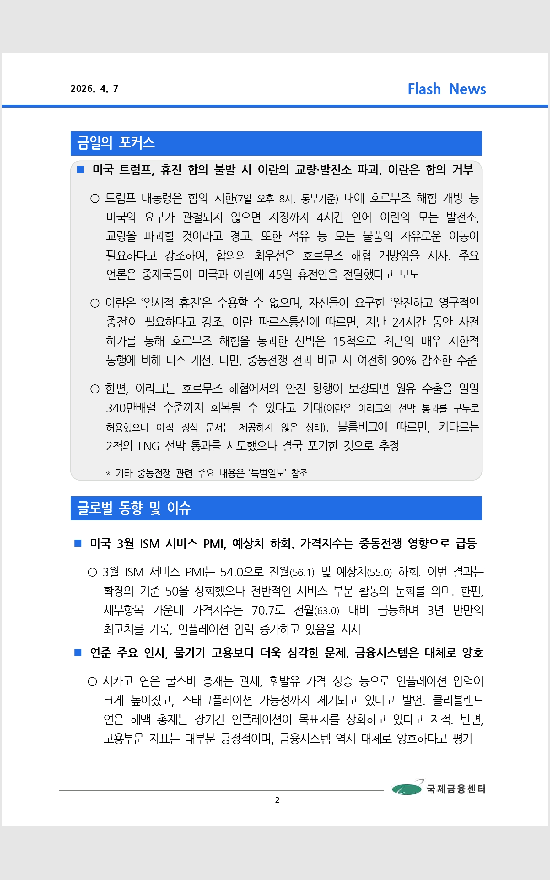 데일리 브리핑 ('26.4.2 국제금융센터)
