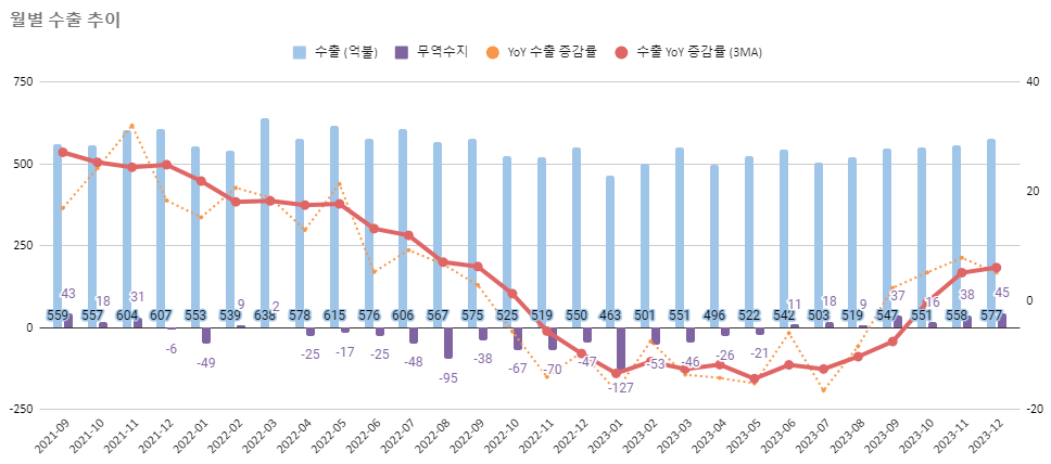 게다가, 23년 1월의 수출이 가장 부진했었습니다. 그 말은 ...