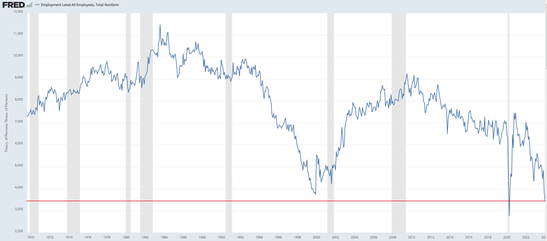 직전 게시글에서 언급한 것처럼 1월 고용지표는 충격적일 정도로 좋았습니다. 특히, non-farm payroll은 통계조작을 의심하게 만들었습니다. 하지만, 정말로 제 눈을 의심하게 만든 지점은 따로 있었습니다. 무려 54%나 증가한 12월 NFP 수정치입니다. 이전 게시글에서 언급한 것처럼 이렇게 크게 수정된 적은 팬데믹 이후 고용지표의 혼돈기를 제외하면 과거 10년간 한 번도 없었습니다.