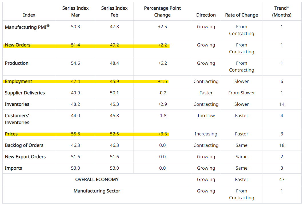 New order와 Production에 비해 Employment 지표의 상승이 약했고, 여전히 하락세에 있다는 점
