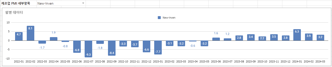 New order 와 Inventories 의 스프레드는 아래에서 보다시피 플러스 상태 유지