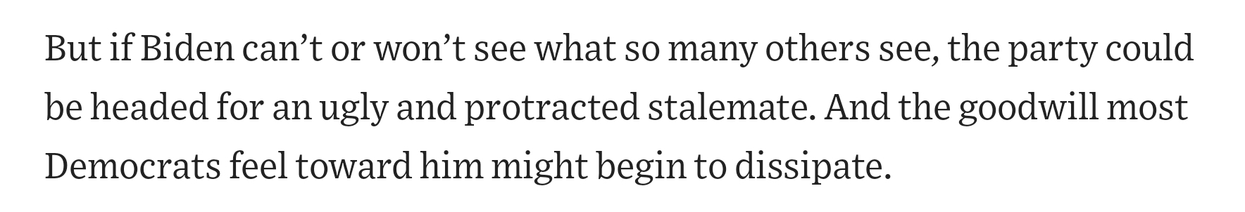"다른 수많은 이들에게는 보이는 것을 바이든만 외면하거나 보지못한다면, 민주당 내에 지저분한...