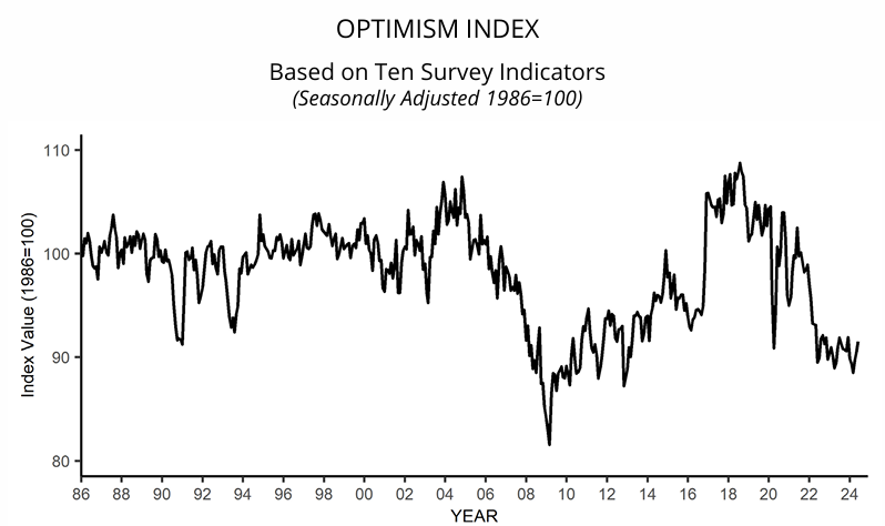 미국의 소상공인 연합 NFIB에서 매월 중소기업 업황 리포트를 내어놓습니다. 업황 지수가 포함되어 있는데, 최신 6월 자료에 포함된 업황 지수입니다.