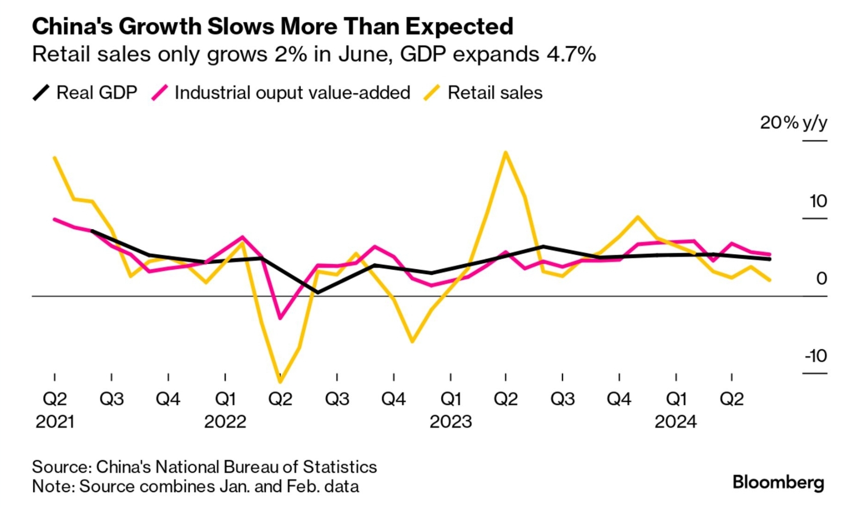 GDP 성장률은 4.7%를 기록하며 예상치인 5.1%에 미달했습니다. 산업생산은 기대치를 상회했지만, 소매판매가 예상치에 크게 미달한 것이 원인으로 보입니다.