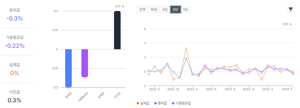 어제 미국 소매판매가 예상치를 소폭 상회하면서 소비가 살아나는 것이냐... 라는 생각이 들게도 만들었죠. 예상치를 상회한 것은 맞으나 차트에서 알 수 있듯이 소매판매는 꾸준히 우하향하고 있습니다.