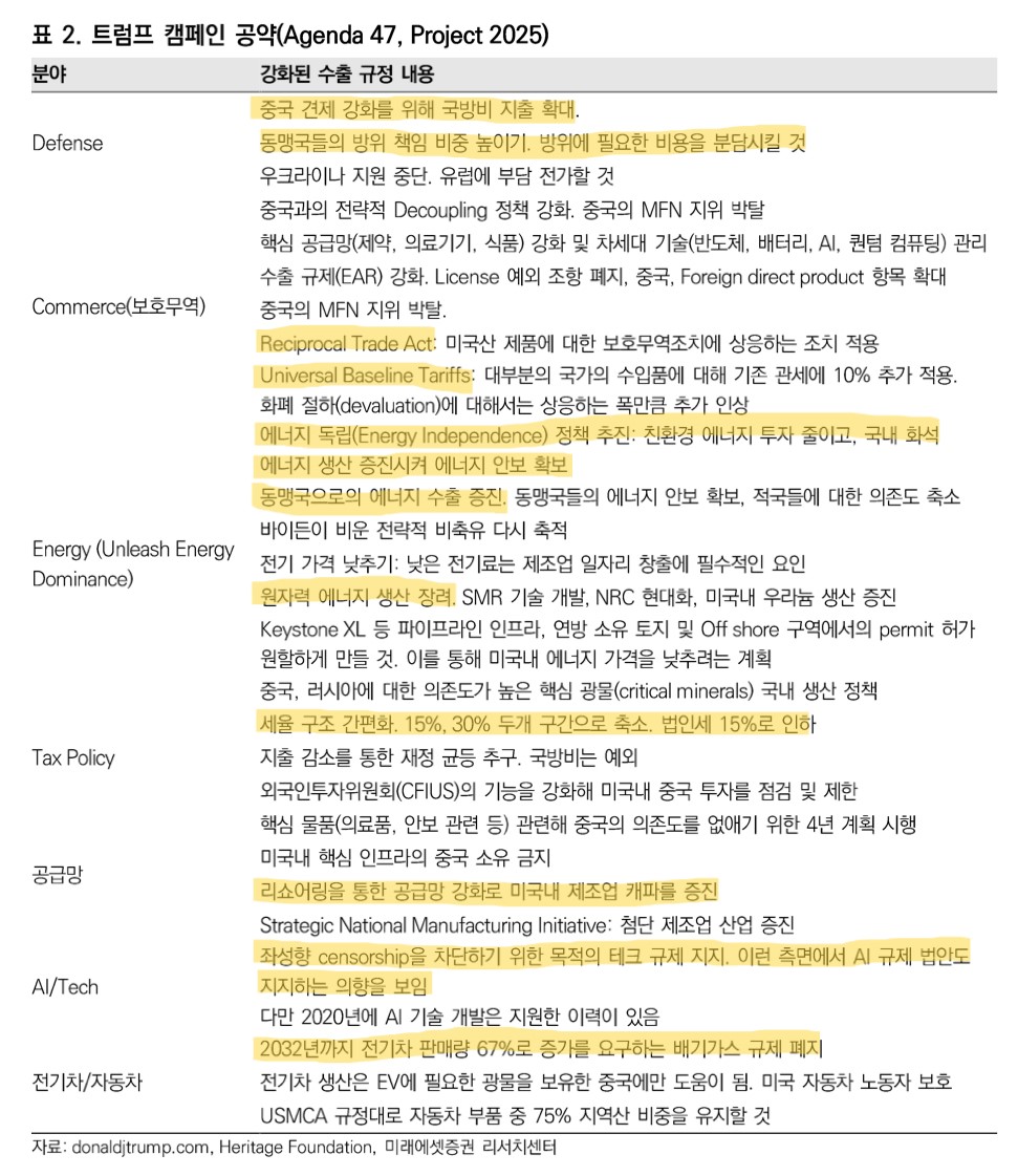 [미래에셋증권] 트럼프 트레이드 간략 정리