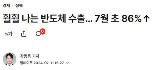 7월 5일에 외환시장은 한국 수출의 부진을 예상하고 있나... 라는 포스트를 적었습니다. 그래서, 이번 달에는 10일 중간 수출입 현황도 한 번 살펴봐야겠다 싶었죠. 관련해서 이런 기사를 이미 보셨을지도 모르겠네요. https://m.seoul.co.kr/news/economy/2024/07/11/20240711500125?cp=seoul 이것만 보면 오... 잘 나왔나? 찾아봤죠. 여기서 수출입 동향 데이터를 확인할 수 있습니다. 먼저 짚고 넘어갈 점... 중요한 것은 조업일 수의 영향을 배제한 일평균 수출액이지 전체 수출액이 아닙니다. 그리고, 이미 수출이 회복세에 있다는 건 다 아는 이야기이고, 제가 궁금한 건 피크아웃 여부입니다. 그러니 YoY보다 MoM이 중요하죠. 자... 그러면 일평균 수출액의 MoM 변화를 보면 되겠군요. 이겁니다. 파란 막대는 전체 수출액, 빨간 막대는 일평균 수출입니다. 각 막대 차트의 구분은 범례를 참고하세요. 한 눈에 알 수 있는 점... 전체 수출은 확실히 전방위적으로 늘었네... 그런데 일평균 수출은 죄다 꺾였는데? 왜? 7월 조업일 수가 8.5일로 5월 (6.5) 과 6월 (6) 에 비해 훨씬 길었거든요. 일평균 수출 기준으로 전체도 그렇거니와, 반도체, 자동차도 감소, 대미 수출 크게 감소, 대중 수출은 계속해서 감소 지속... 10일 중간 수출입 현황 기준으로는 피크아웃의 냄새가 나는데요? 위에 공유한 기사에서는 수입도 늘었다고 써놨는데, 일평균으로는 어떨까요? 네, 마찬가지입니다. 감소 일색입니다. 오히려 전월보다 감소폭이 더 커졌습니다. 앞으로 월말까지는 시간이 남았죠. 하지만, 지금 추세대로라면 일평균 수출은 피크아웃의 기미를 보일 가능성이 높아 보입니다. 그리고, 어쩌면 외환 시장은 이 상황을 이미 예상하고 있었을지도 모를 일이죠. 이번달 한국 수출입 현황은 잘 챙겨 봐야겠습니다.