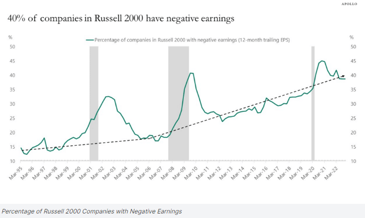 그렇지만 여전히 40% 가까운 Russell2000 기업들이 적자 기업이라는 사실을 잊어서는 안됩니다. 대부분이 내수기업들이고, 민간 수요의 강도에 영향을 크게 받습니다. 미국 가계의 지출 여력에 타격이 오면 직격을 맞게 되니 편안한 마음으로 길게 투자할 대상은 아닐 것으로 보입니다.