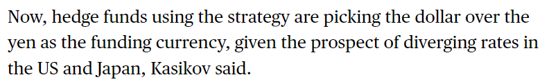 Citi 은행은 투자자들의 리스크 선호 심리가 돌아왔다고 보고 있습니다. 그러면서 캐리 트레이드가 다시 돌아오고 있다고 합니다. 달라진 점은? 일본에서 엔을 조달하지 않고, 미국에서 달러를 조달합니다.