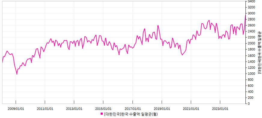 이번 9월 일평균 수출액은 29.4억불을 기록하며 과거 30년 최대치를 기록했습니다.