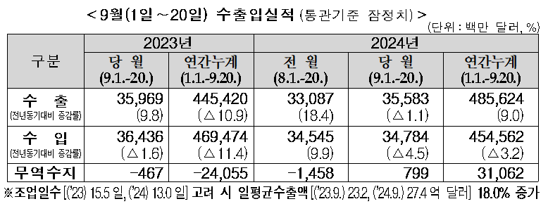 ![[24년 9월] 한국 9월 20일 중간 수출입 현황](https://post-image.valley.town/1OoiAVvybysjzLRIPrO4i.png)