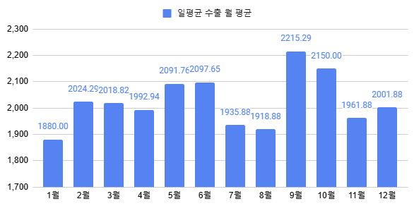 11월 20일까지의 중간 수출입 현황을 간략히 살펴봅시다. 위 차트들은 모두 일평균 수출의 추이를 나타냅니다.
