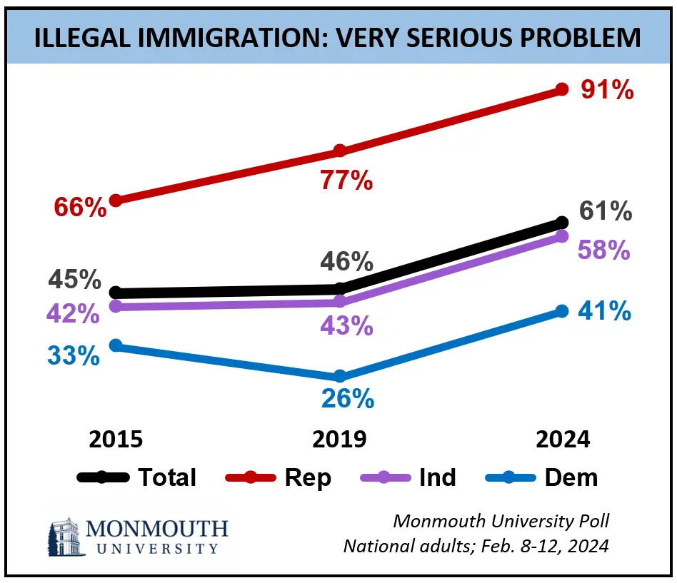 불법이민 문제를 매우 심각하게 생각하는 이들을 보면 공화당 지지자들의 비중이 91%로 압도적입니다....