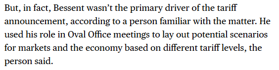 지난 포스트에서 이번 관세정책은 MAGA 광신도들이 주도한 4월 2일의 관세 대재앙을 주도했고, 베센트는 들러리에 불과했다고 했었죠. 이 내용을 다룬 블룸버그 기사입니다.