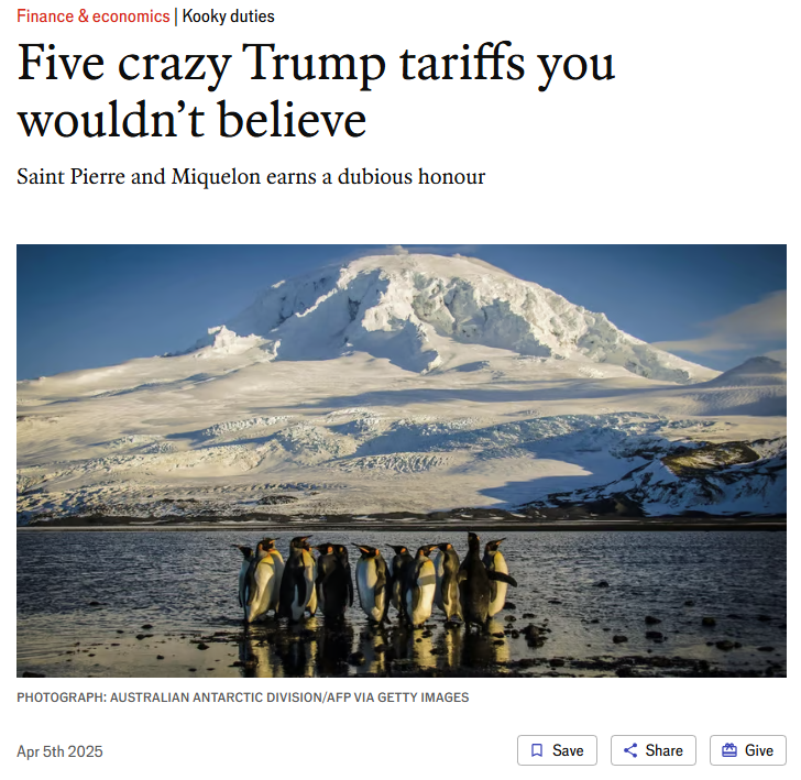 트럼프 관세가 조악했다는 이야기가 나왔으니 얼마나 조악했는지, 다 아는 부분 빼고 짚어보죠. Economist에 다음과 같은 아티클이 올라왔습니다. 먼저 주의할 점... Economist는 영국 언론이며 1기 때부터 트럼프에게 매우 비판적인 논조를 이어왔습니다.