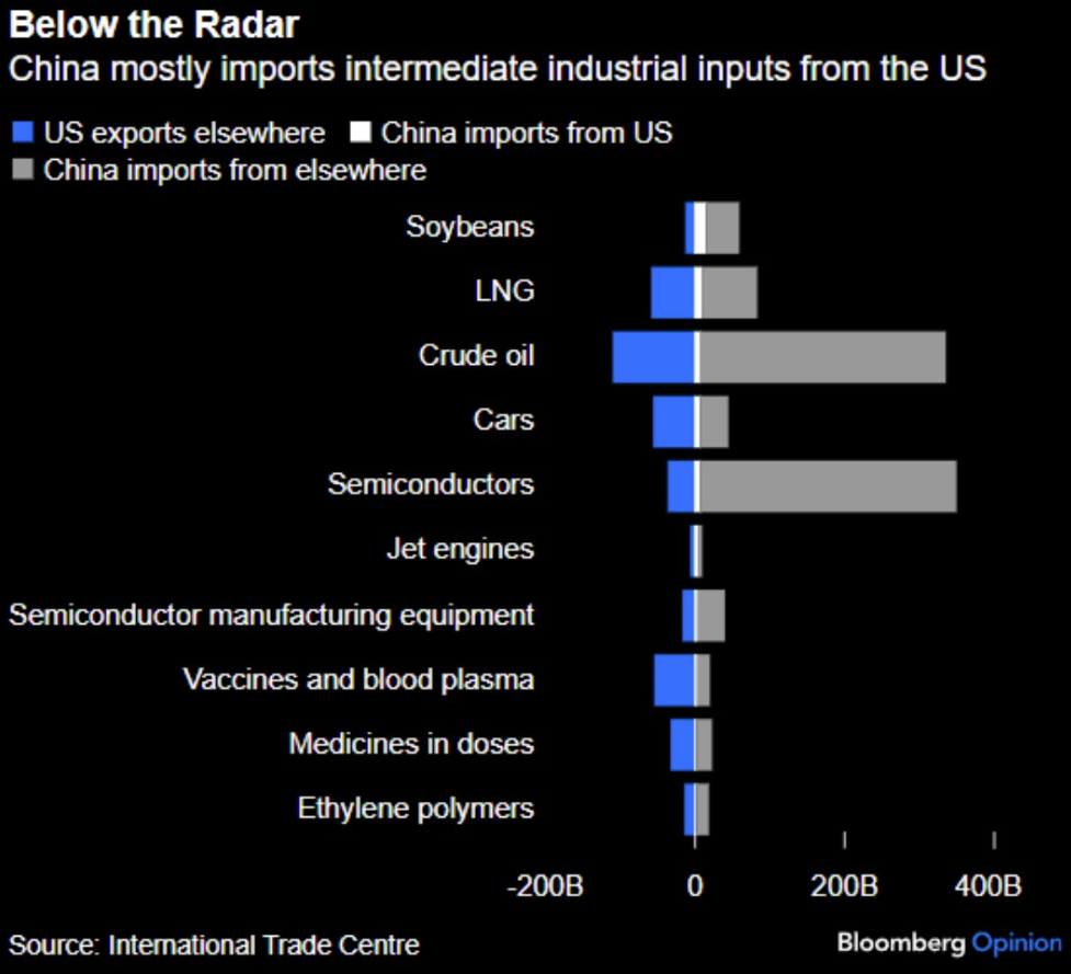 미국의 대중수출 품목들의 비중을 보면... 원유, 반도체, LNG, 대두... 주로 원자재 내지는 산업 중간재의 비중이 압도적으로 높아 소비자들이 즉각적으로 피부로 느낄 품목들은 아닙니다. 특히, 대두는 대중수출의 비중이 60%가 넘기에 미국 농가가 직접적인 타격을 크게 입습니다. 이러니 중국은 끝까지 싸우겠다는 의지를 천명했죠.