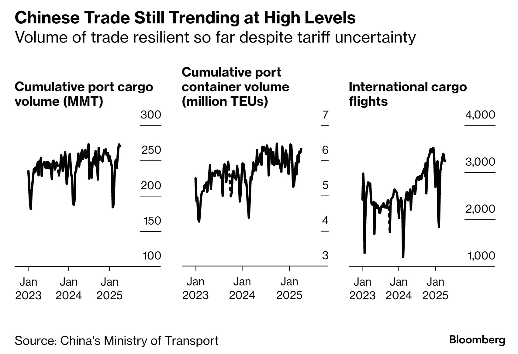 우선, 당장 중국의 무역거래는 여전히 잘 나가고 있죠. 관세 발효 이전의 데이터니까 당연하지만 말이죠. 중국 수출이 24년에도 엄청나게 호황을 이루었다는 사실은 모두가 알고 있습니다. 24년 기준, 중국 수출의 약 15%를 미국이 차지했습니다. 만약, 미국과 중국의 교역이 끊긴다면 내수와 투자가 부진하여 순수출이 성장에 상당히 기여하고 있는 중국의 성장에는 타격이 꽤 있겠죠.