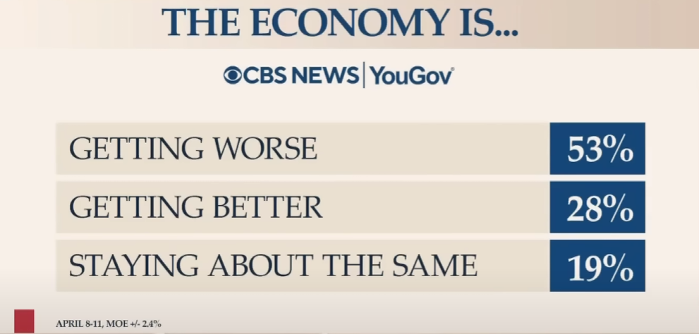 CBS와 YouGov 여론조사에 따르면 미국 경제가 나빠지고 있다고 응답한 이들의 비율이 과반을 넘었습니다.