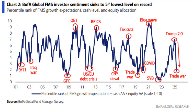 기관 투자자들의 투자 심리 역시 수직 낙하했습니다. 과거 위기 및 침체 시기와 거의 비슷한 레벨로 추락했죠. 대형 위기가 부재한 상태에서 단 2개월만에 이렇게 급격히 심리가 악화된 경우는 거의 없었습니다.