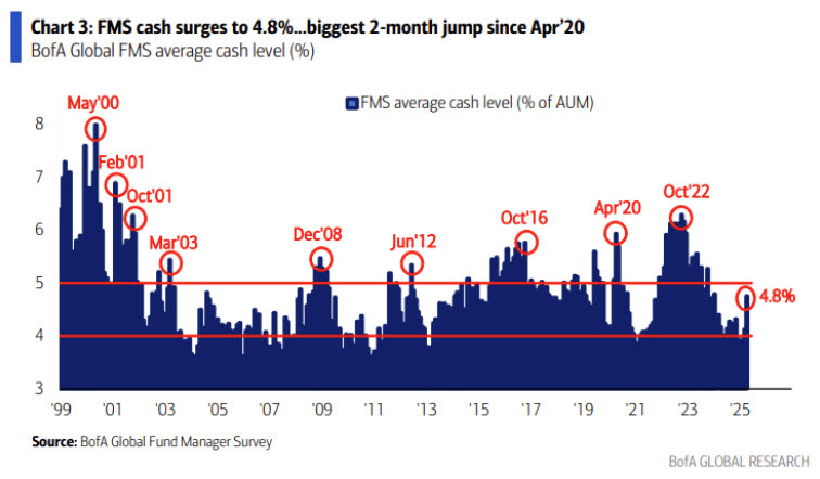 심리가 급격히 냉각되니 당연히 기관 투자자들의 현금 보유 비중 역시 급증했습니다. 현재 레벨로 보면 아직 더 갈 길이 남아있는 것으로 보이죠. 현금 레벨을 높이기 위한 전방위 매도가 이어졌다고 볼 수 있습니다.