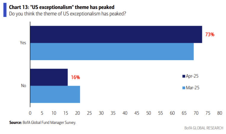 3~4월 동안 기관 투자자들의 미국 주식 선호도는 급격히 감소했습니다. 과거에 한 번도 없을 정도로 급격한 반전이 벌어졌습니다.