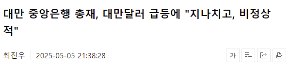 대만 중앙은행 총재조차 지나치고 비정상적이라고 발언했습니다. 아마 이창용 총재도 비슷한 입장이 아닐까 싶네요.