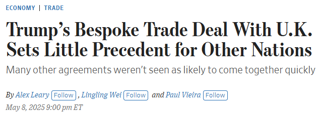 사실 어제의 뉴스 플로우를 보면... 트럼프에게서 절박함과 급박함이 느껴졌습니다. 흡사 치어리더처럼, 주요국과의 무역협상이 임박했다면서 온갖 군불을 피우면서, 중국과의 관세도 낮출 것이라는 등 시장의 비위를 맞추려는 모습이 보여졌죠. 그리고, 하이라이트로 영국과의 무역협정을 체결했다는 소식이 나옵니다.