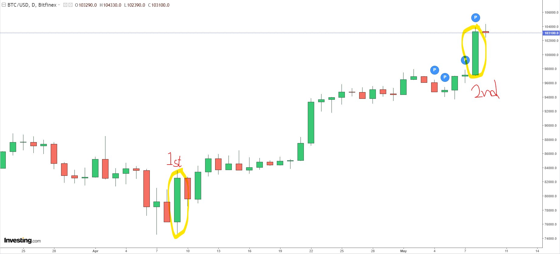 비트코인은 1차 buy call이 있었던 4월 9일에 8%, 2차 buy call이 있었던 어제 6% 상승했습니다. 큰 차이는 없었죠.