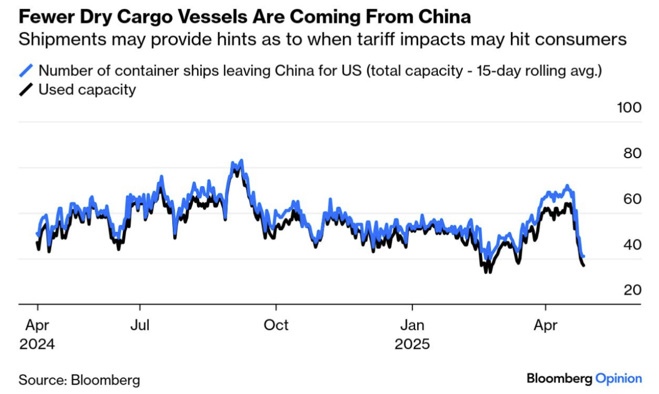 4월 2일 이후, 중국발 미국향 컨테이너 선적량은 급감했습니다. 5월에 다시 컨테이너 부킹이 급증한 것은 양국의 활발한 무역 재개의 신호탄이라고 보아야 하느냐... 어쩌면 그저 급브레이크의 반동은 아닐까요?
