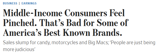 작년까지만 해도 미국의 저소득층이 고통을 받고있다는 기사들이 나왔었는데, 25년 초 이후로는 중산층이 고통을 받고 있다는 기사들이 쏟아지고 있습니다.