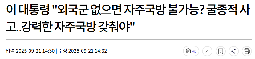 느닷없이 일요일에 이재명 대통령의 자주국방 강조... 뭐지 뜬금없이?