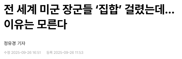 그러더니 뜬금없이... 도저히 이유를 짐작조차 할 수 없는, 아무리 생각해도 불필요한...미국 장성 전원 긴급소집을 명령하는 트럼프.