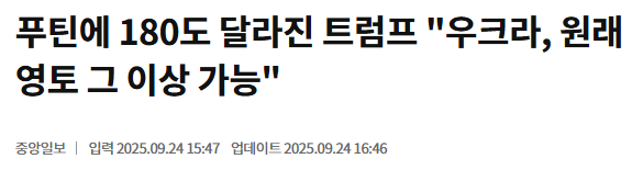 러시아 편에 붙어 우크라이나를 굴복시켜 노벨 평화상 노리나 했더니, 이제는 정반대로 싸움을 부추기는 트럼프...