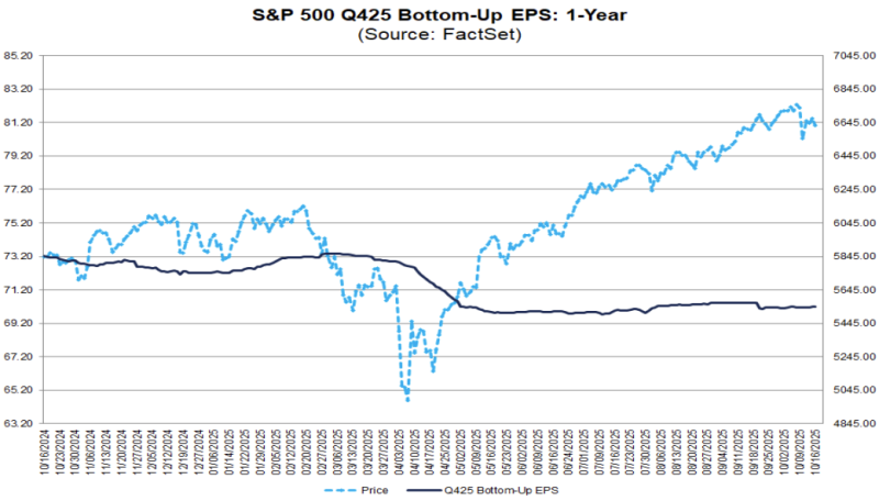 4분기 예상 EPS도 보시다시피 과거 1년 동안 계속해서 낮아지죠. 이렇게 교묘하게 문턱을 낮추니 어닝 시즌은 계속해서 서프라이즈가 이어집니다. 문턱 낮추기 작업이 계속되고 있으니 4분기도 별 탈이 없다면 좋게 마무리될 가능성이 높아 보이네요.