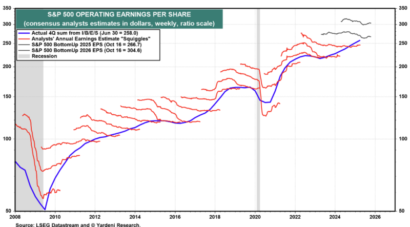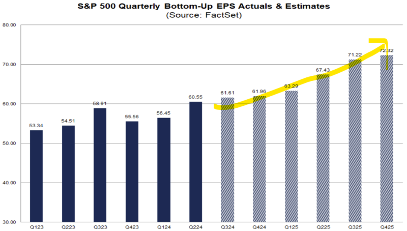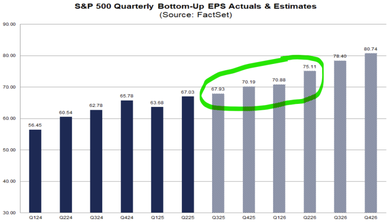 지난 1년간 25년 3분기 EPS 전망은 보시다시피 꾸준히 낮아지고 있습니다. 실적 발표에서 넘어야 할 허들이 계속 낮아지고 있는 거죠. 그러니, 아마도 3분기 실적시즌도 높은 서프라이즈율을 기록하며 잘 마무리될 공산이 크다고 생각합니다. 3분기만 그럴까?