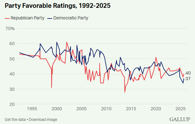 몇 번 언급한 적이 있지만, 그렇다고 민주당이 뭘 잘해서 이런 결과가 나온 것이 아니에요. 민주당에 대한 호감도, 지지도는 여전히 바닥입니다. 트럼프와 ...