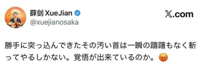당연히 중국은 드라마틱하게 반응. 한글 기사는 그래도 점잖은 편. 오사카 중국 총영사의 트윗 원문...